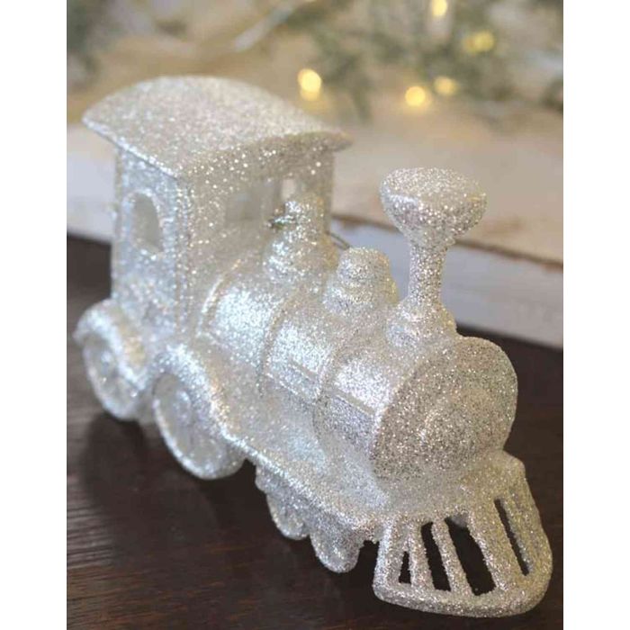 Acryl Anhänger Lokomotive GEREON, Glitzer, weiß-silber, 12x7cm