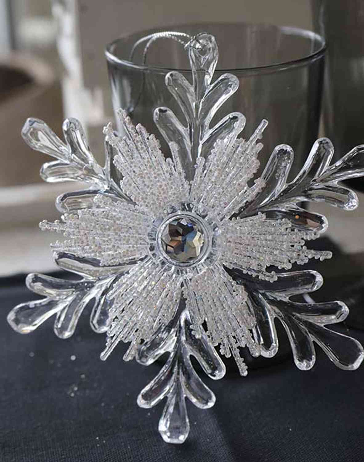 Acryl Hänger Eisblume GEORGINA, Glitzer, transparent-silber-weiß, Ø14cm