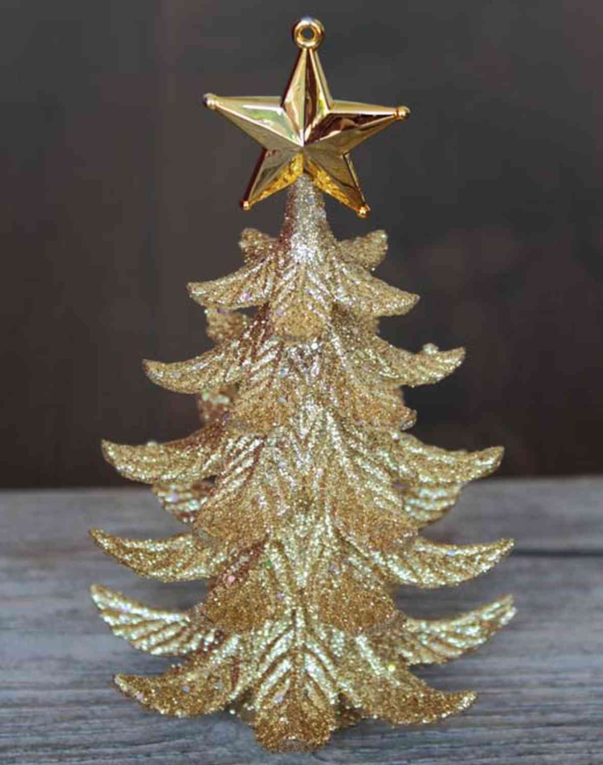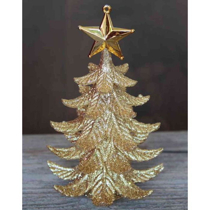 Acryl Hänger Tannenbäumchen RION mit Stern, Glitzer, gold, 12cm, Ø9cm