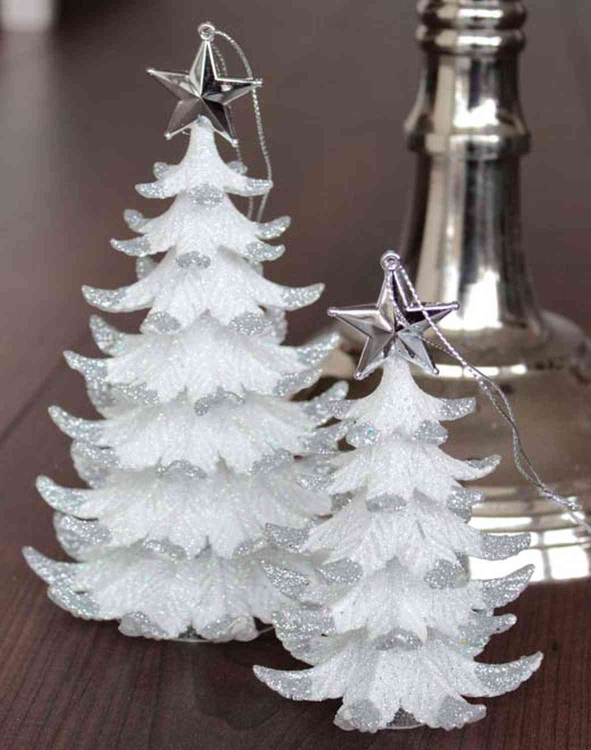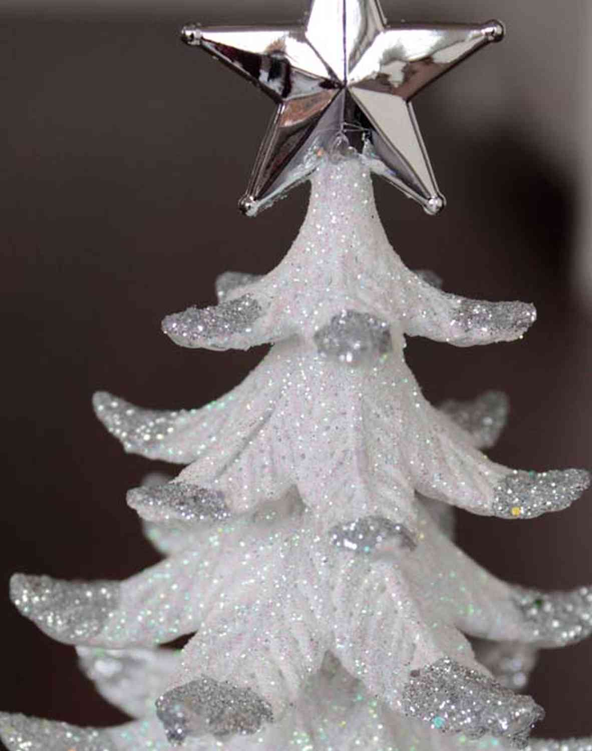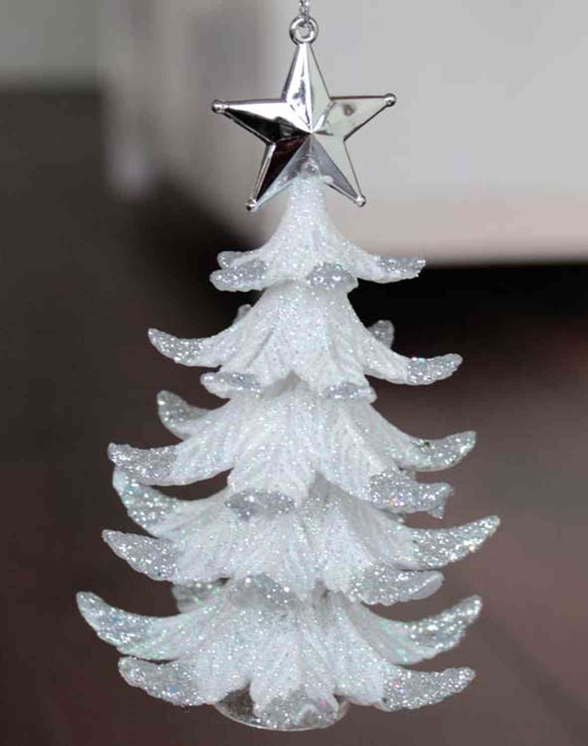 Acryl Hänger Tannenbäumchen RION mit Stern, Glitzer, weiß-silber, 12cm, Ø9cm