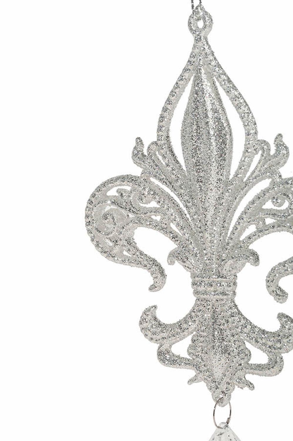 Acryl Tannenbaumanhänger Heraldische Lilie AZARIEL, Glitzer, silber, 15cm