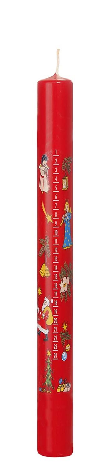 Adventskalender Stabkerze TEMPERANCE, Adventstage Fotodruck, rot-bunt, 25cm, Ø2,3cm - Made in Germany