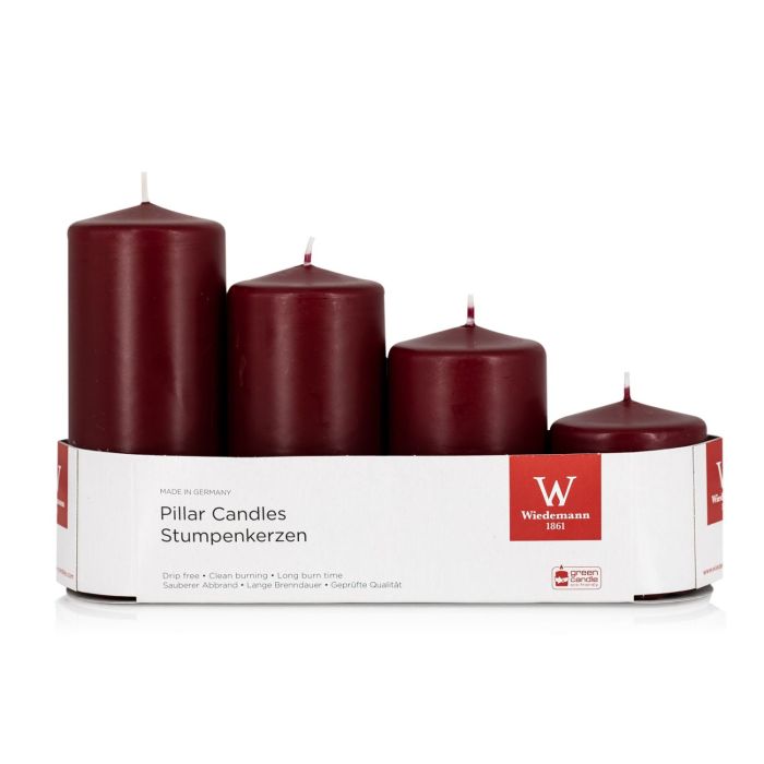 Adventskerzen JENARO, 4 Stück, abgestuft, bordeaux, 6cm, 8cm, 10cm, 12cm, Ø5cm - Made in Germany