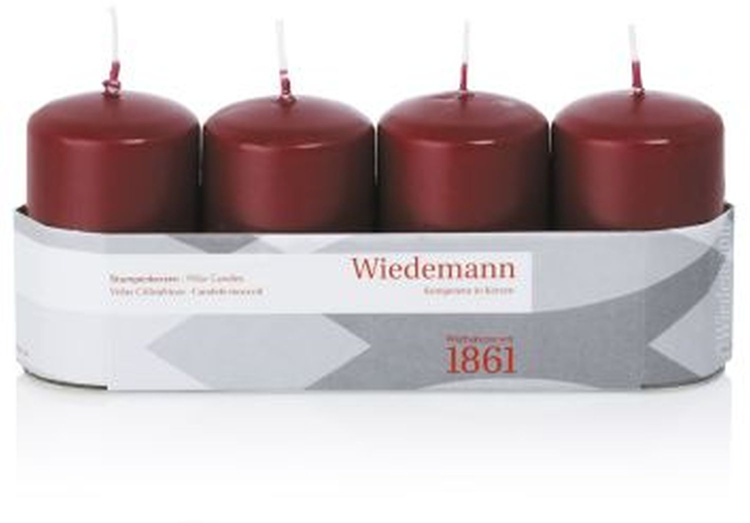 Adventskerzen JENARO, 4 Stück, bordeaux, 8cm, Ø5cm, 18h - Made in Germany