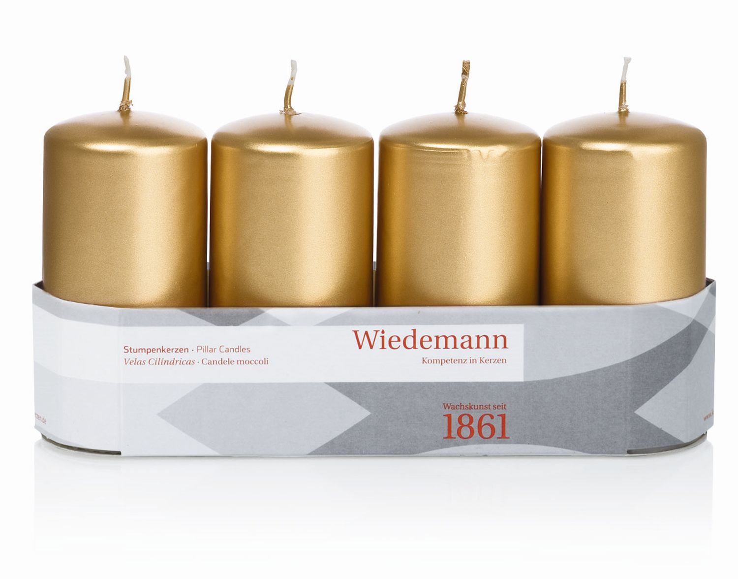 Adventskerzen JENARO, 4 Stück, gold, 10cm, Ø5cm, 23h - Made in Germany