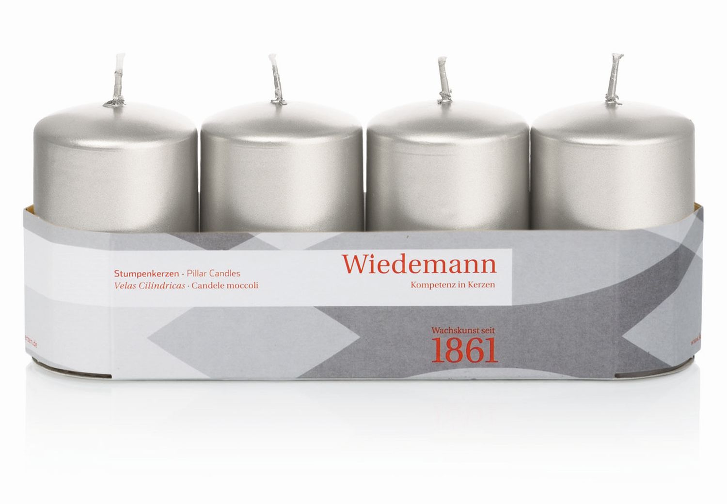 Adventskerzen JENARO, 4 Stück, silber, 8cm, Ø5cm, 18h - Made in Germany