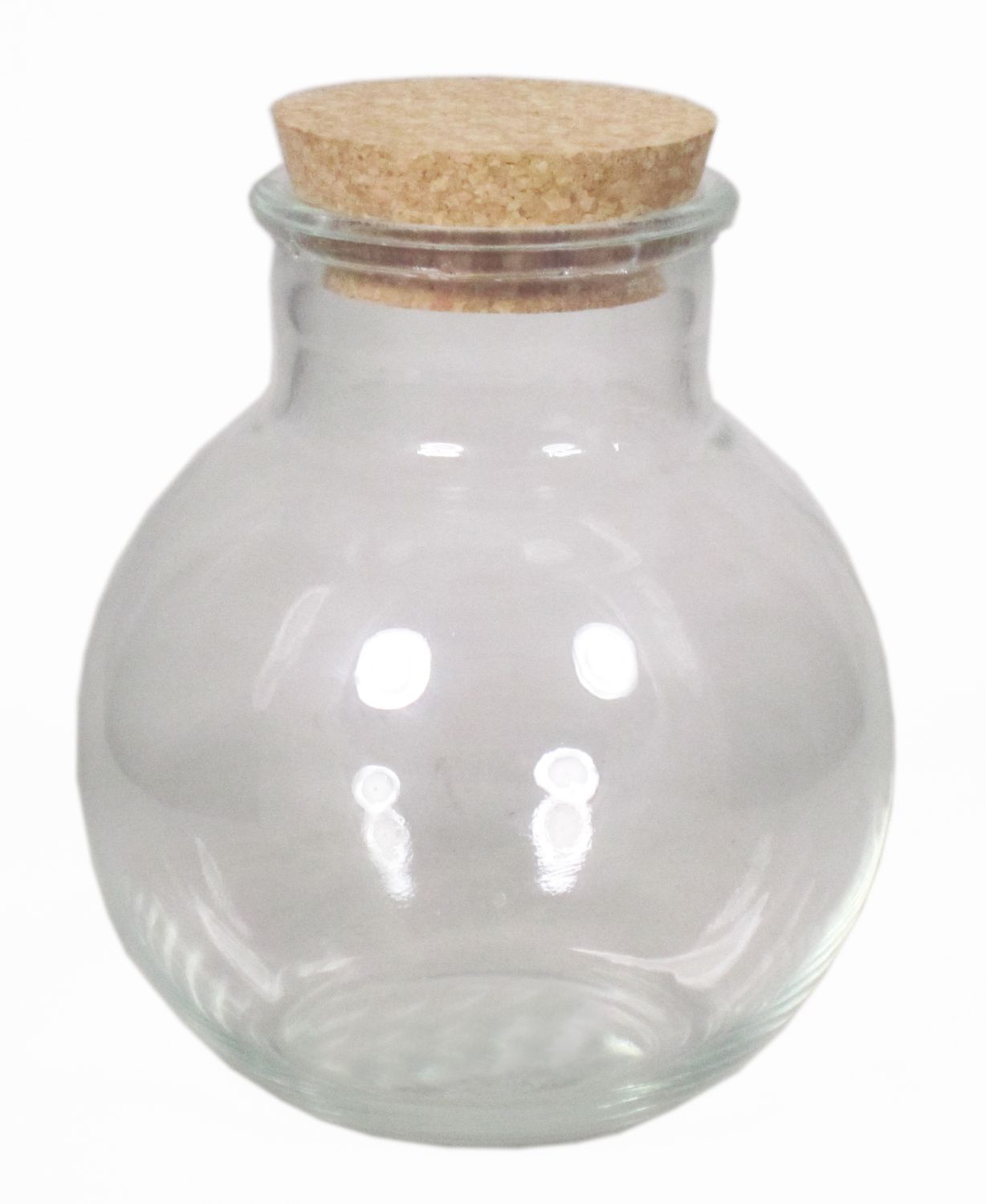 Das Bonbonglas WINDA hat eine kugelförmige Form und einen Korkdeckel zur besseren Konservierung von Lebensmitteln.