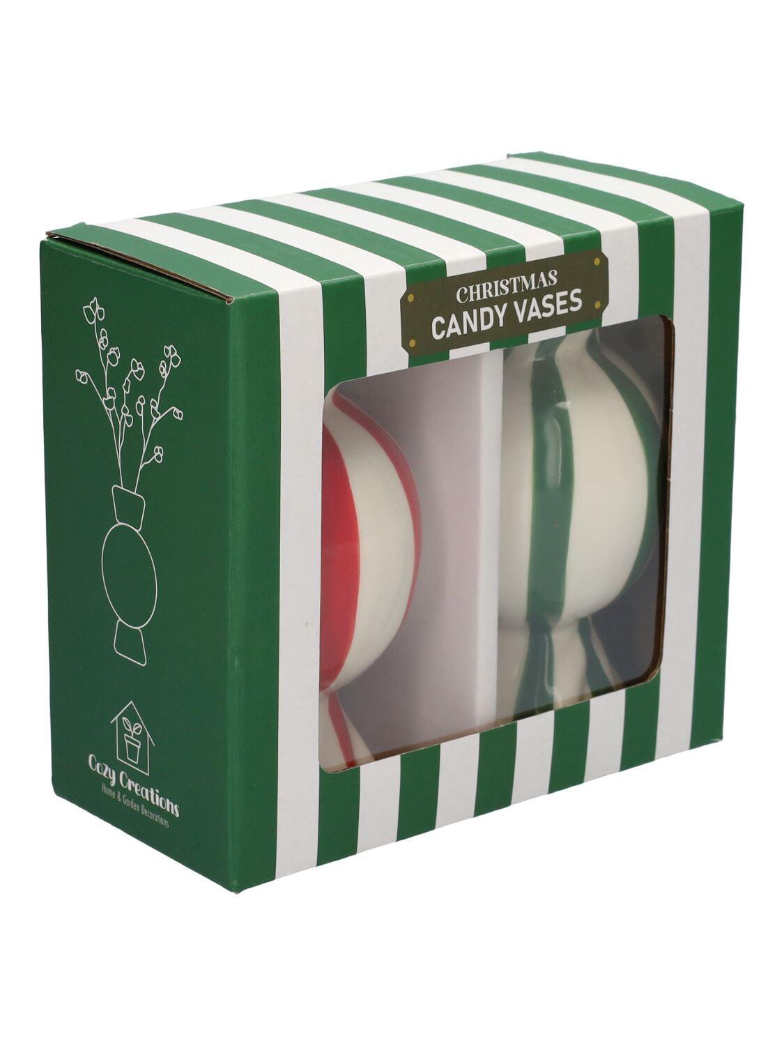 Bauchige Einzelblumenvase Bonbon AMIEL aus Keramik, 2 Stück, grün-rot-weiß, 11,5cm, Ø6cm
