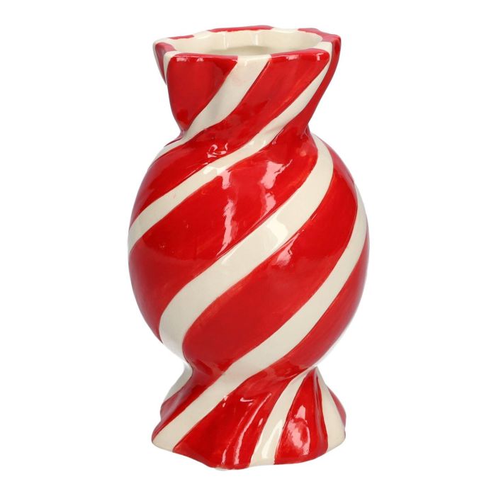 Bauchige Einzelblumenvase Bonbon AMIEL aus Keramik, mit schrägen Linien, rot-weiß, 24,7cm, Ø14cm