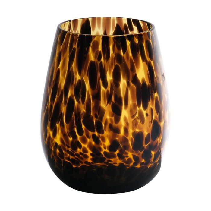 Bauchiges Teelichtglas RUSSELL, Leopardenmuster, braun-klar, 12cm, Ø9cm