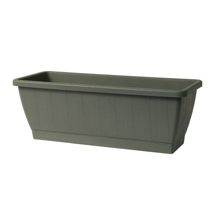 Blumenkasten Balkon OPHIRA aus recyceltem Kunststoff, Wasserspeicher, Untersetzer, salbeigrün, 39x19,5x17,5cm