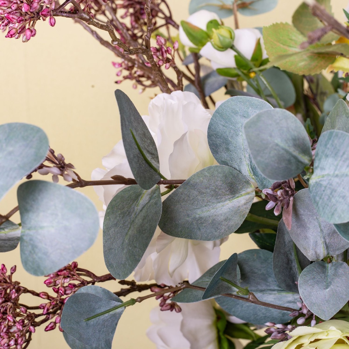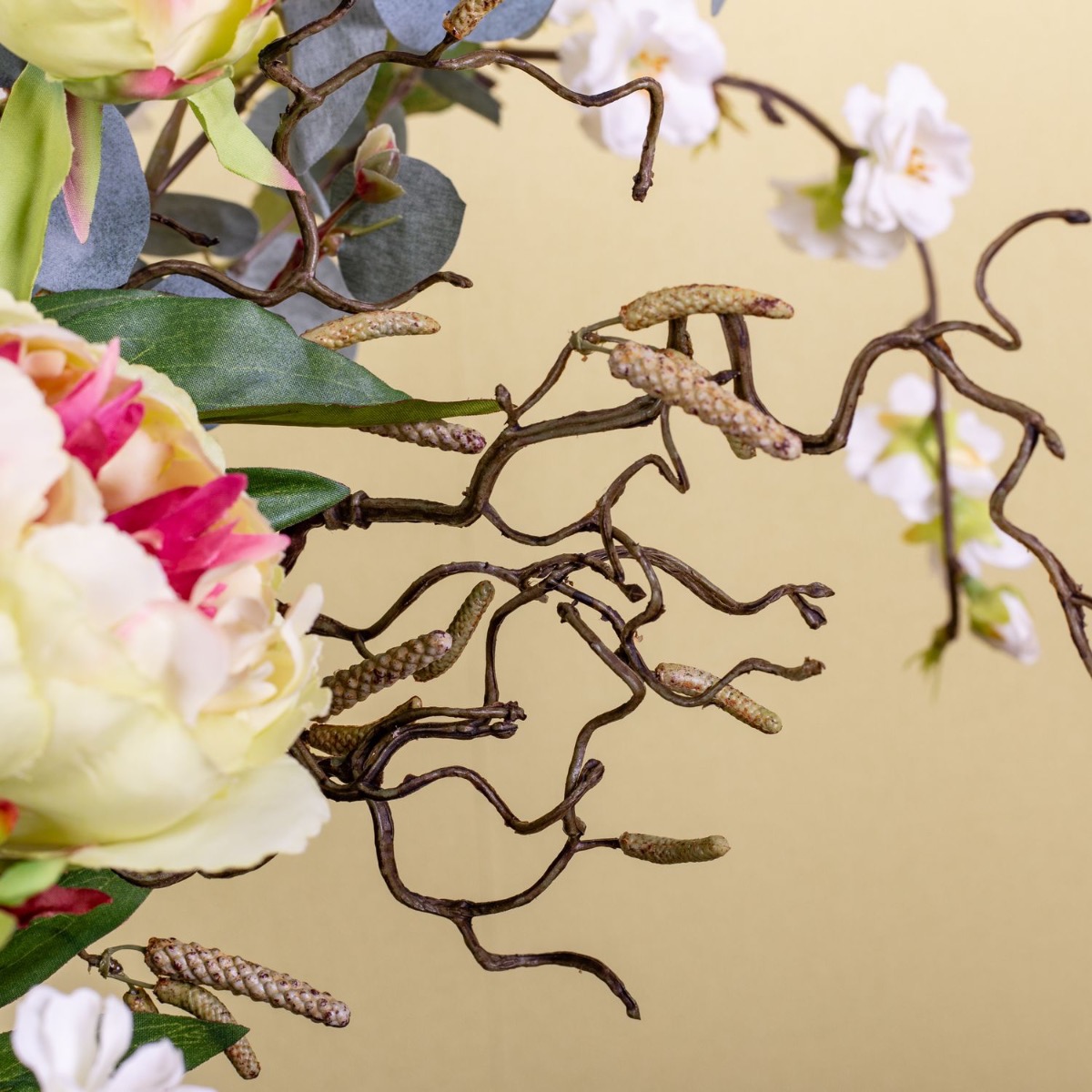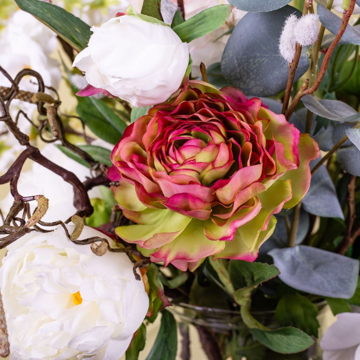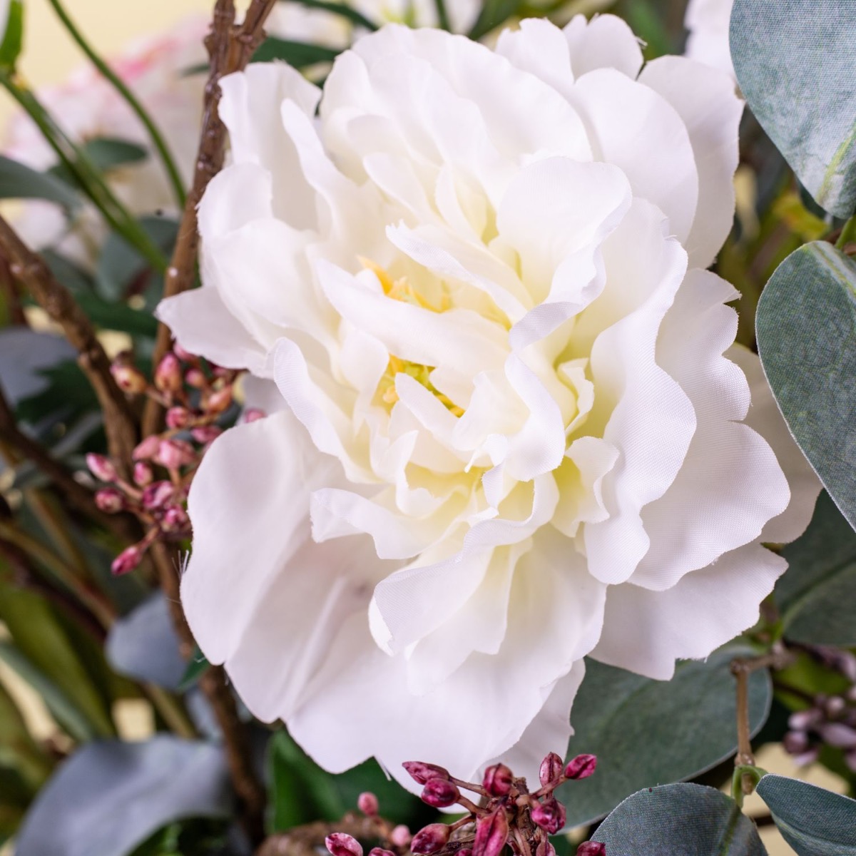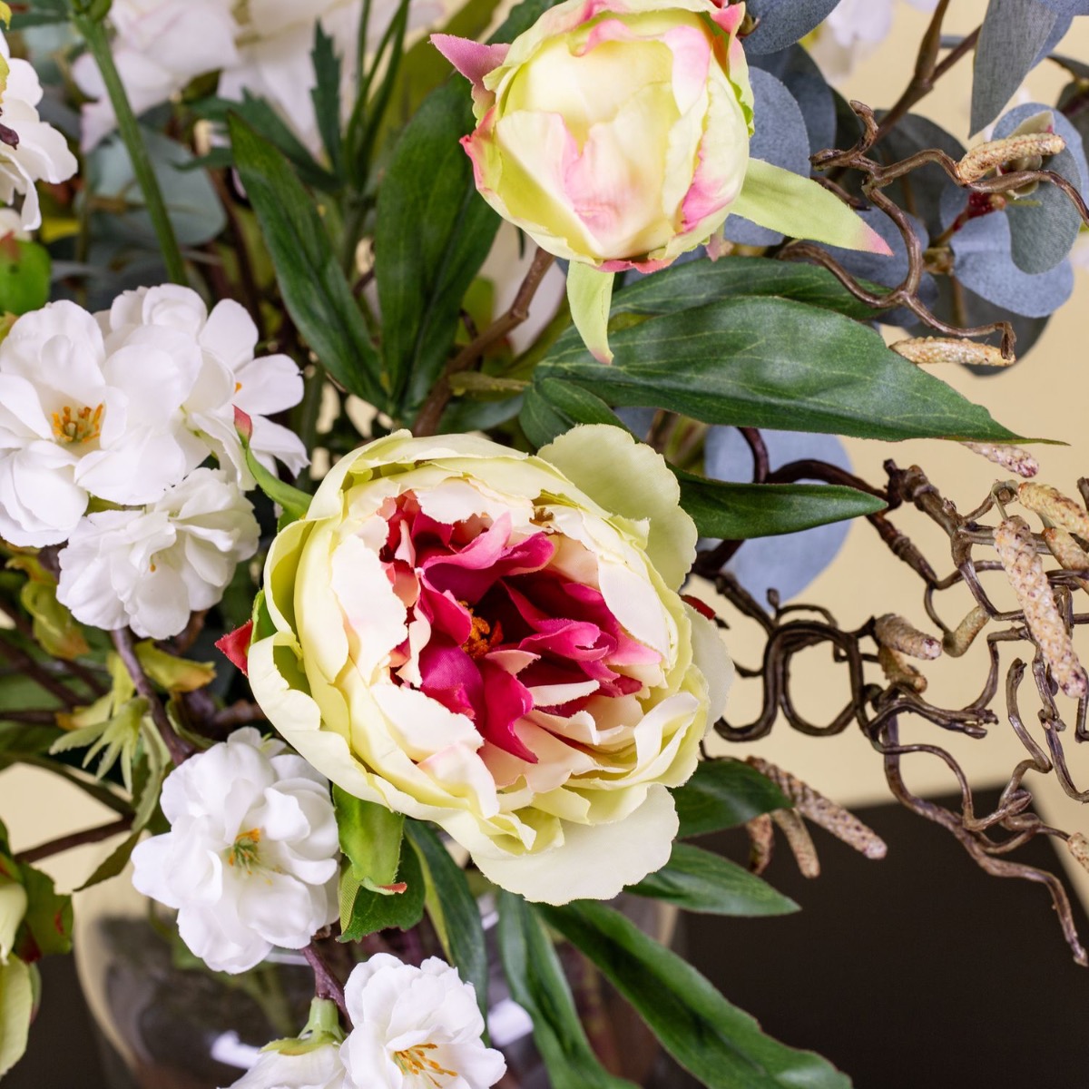 Apfelblüten und Pfingstrosen! So sieht ein typischer Frühsommertag aus. Die Sonne scheint und es wird endlich wieder warm. Man freut sich auf den Sommer und genießt, wie die Natur ihre bunten Farben und zauberhaften Blumen hervorbringt. Wie eine blumige Umarmung wirkt dieser Strauß, mit seinen zartgelben Pfingstrosen und den weißen Kirschblüten, die von grau-grünen Eukalyptuszweigen umgeben sind. Genauso stellte sich unsere Kundin Isabel Ihren Blumenstrauß vor, der im neugestalteten Flur seinen Platz findet. Dieser Look ist eine schöne Deko für jedes zuhause. Shop the Look!