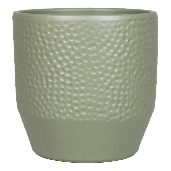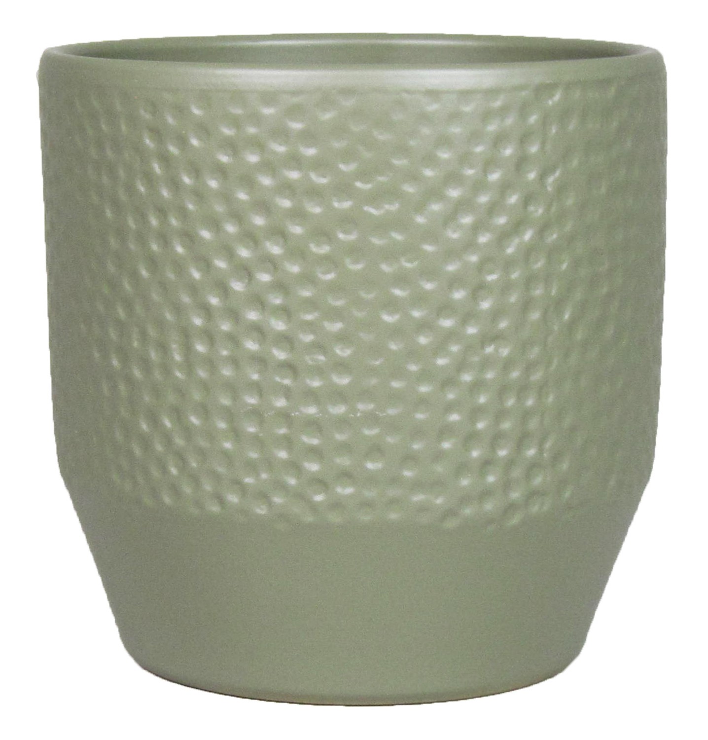 Blumentopf BIHAM, Keramik, Hammerschlag Muster, olivgrün-matt, 13,2cm, Ø13,5cm