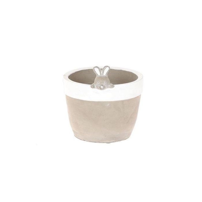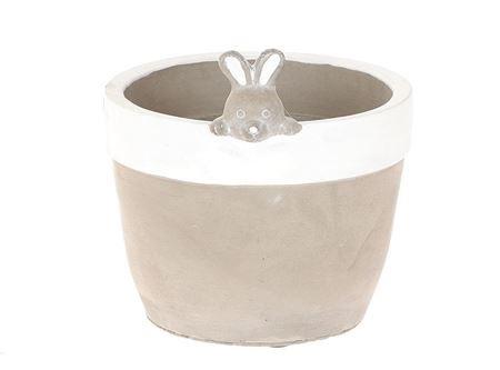 Blumentopf BONCHI mit Hasenkopf, Keramik, Osterdeko, grau-weiß, 12,4cm, Ø12,4cm