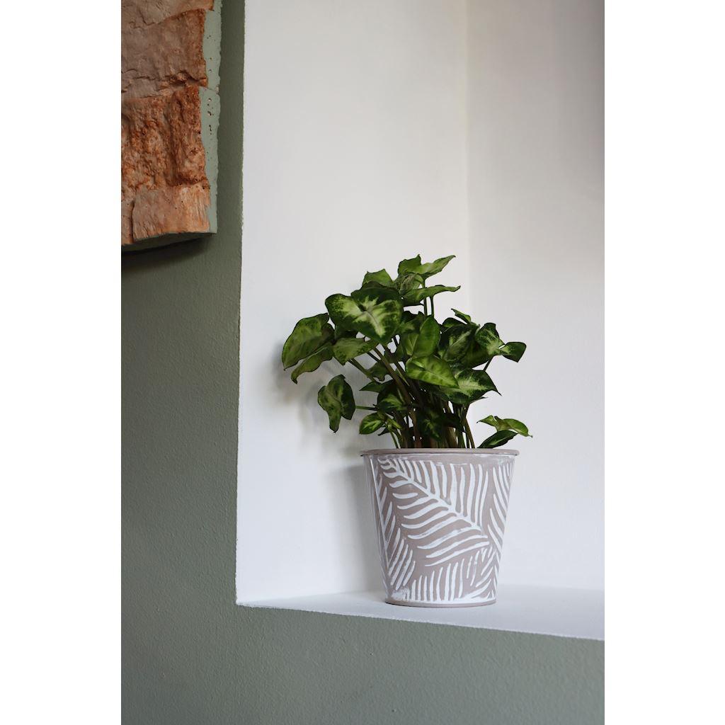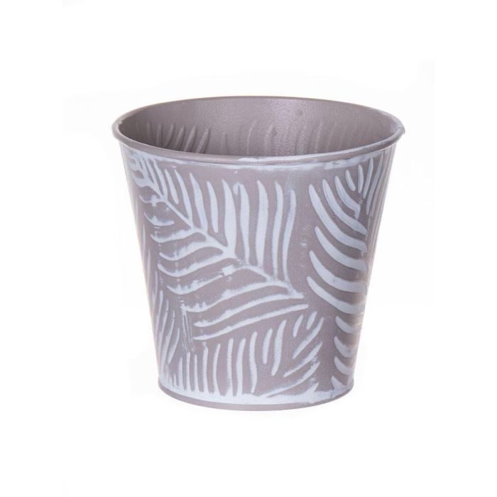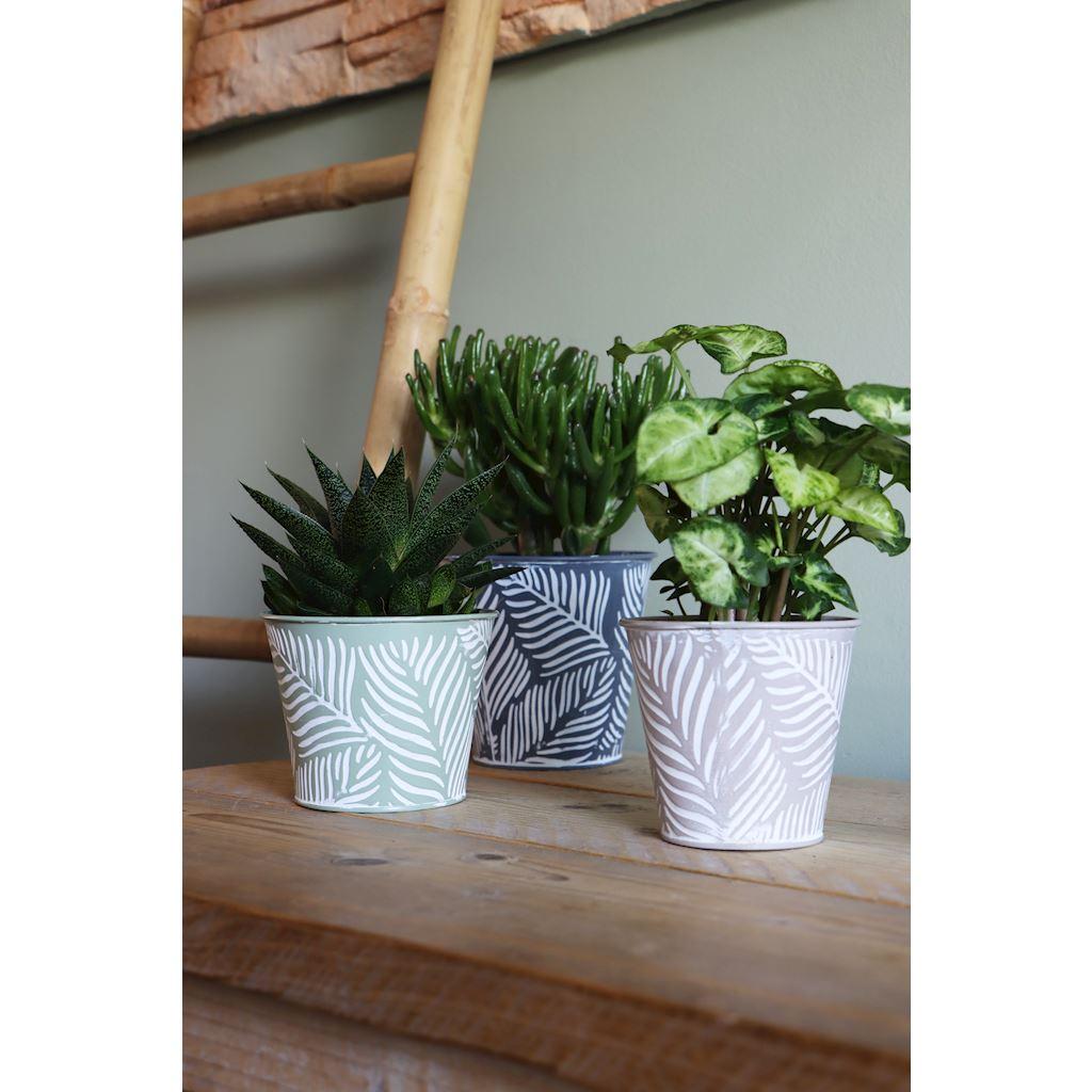 Blumentopf FABIONALTA mit Blattmuster, Zink, taupe-weiß, 9,3cm, Ø10cm
