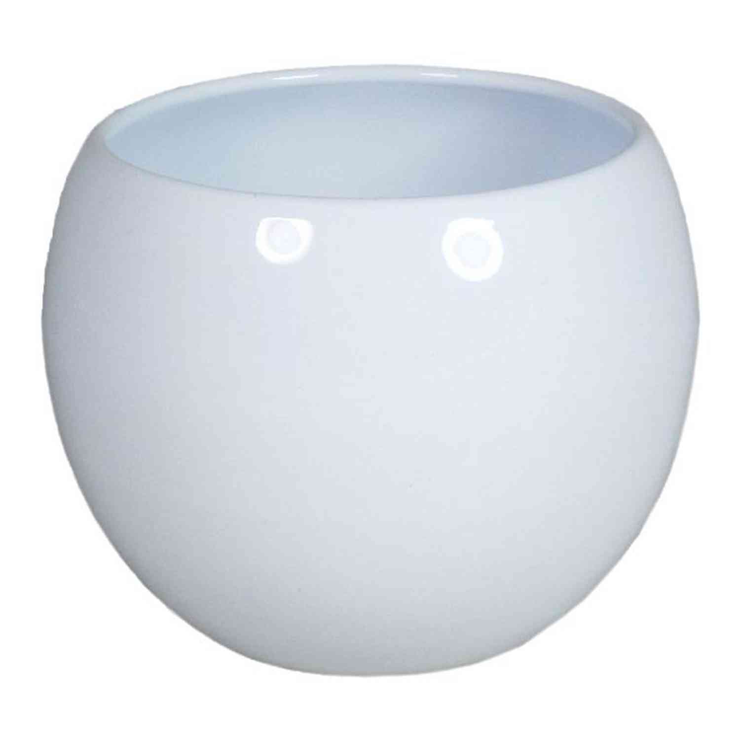 Übertopf HAMADAN aus Keramik in Farbe weiß mit einem Durchmesser von ca. 14.5 cm und einer Höhe von ca. 11 cm.