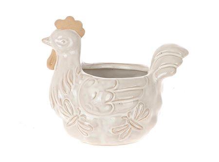 Blumentopf Huhn ARKAS aus Keramik, Libellen-Motiv, grau-weiß, 15,6x10,6x13,2cm