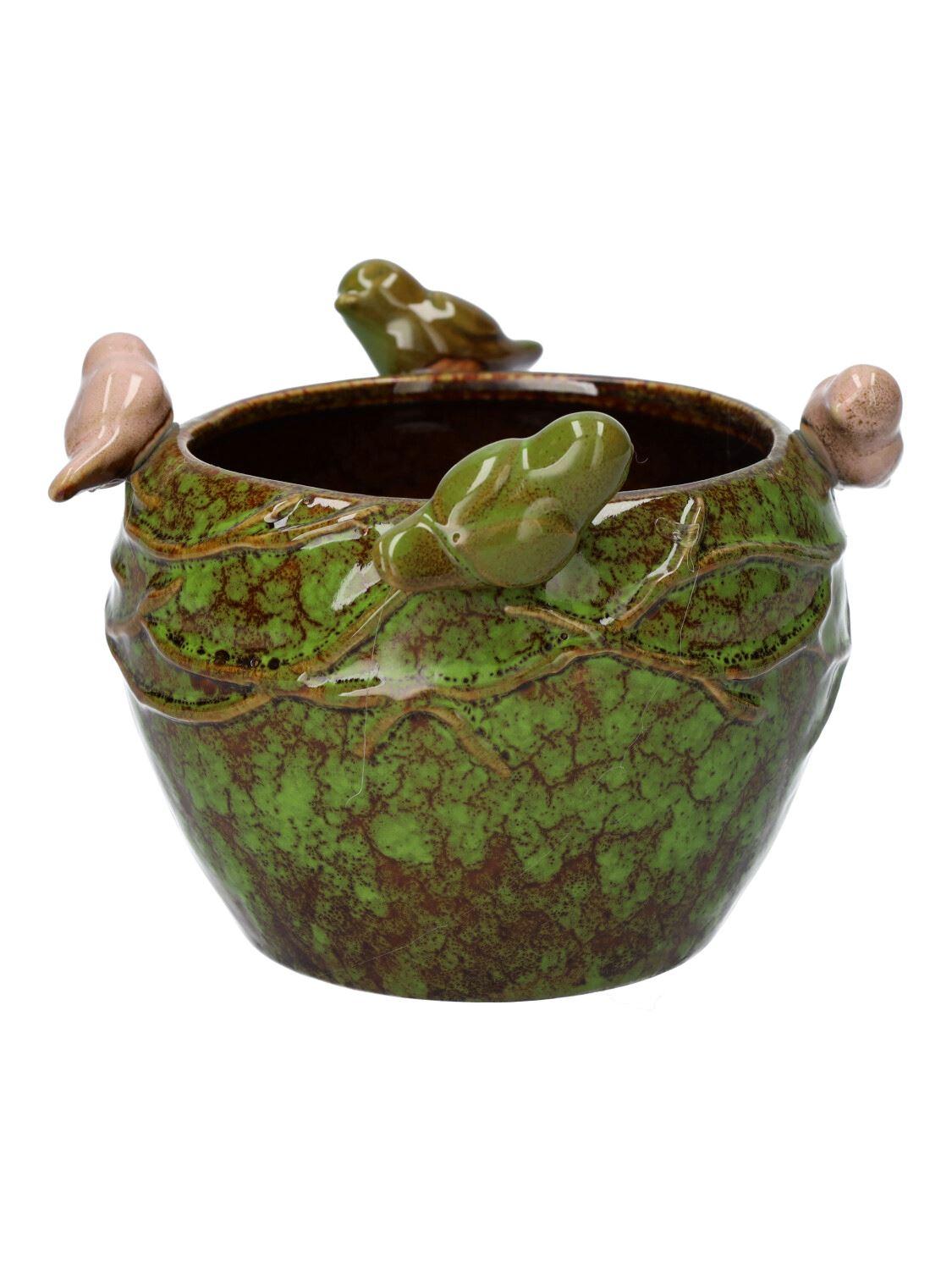 Blumentopf SARINO aus Keramik, mit 3D Vögeln, grün-braun-beige, 10,5cm, Ø14cm
