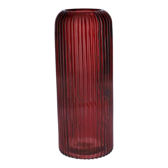 Blumenvase ALBURGIS mit Rillen, Glas, burgunderrot-klar, 25cm, Ø10cm