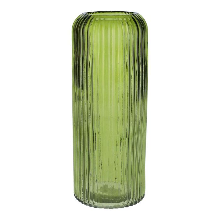 Blumenvase ALBURGIS mit Rillen, Glas, grün-klar, 25cm, Ø10cm