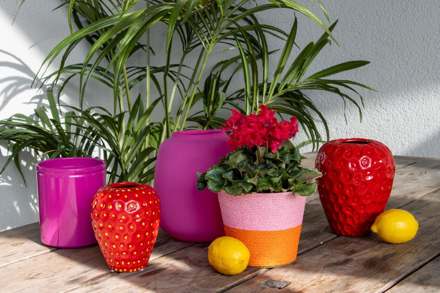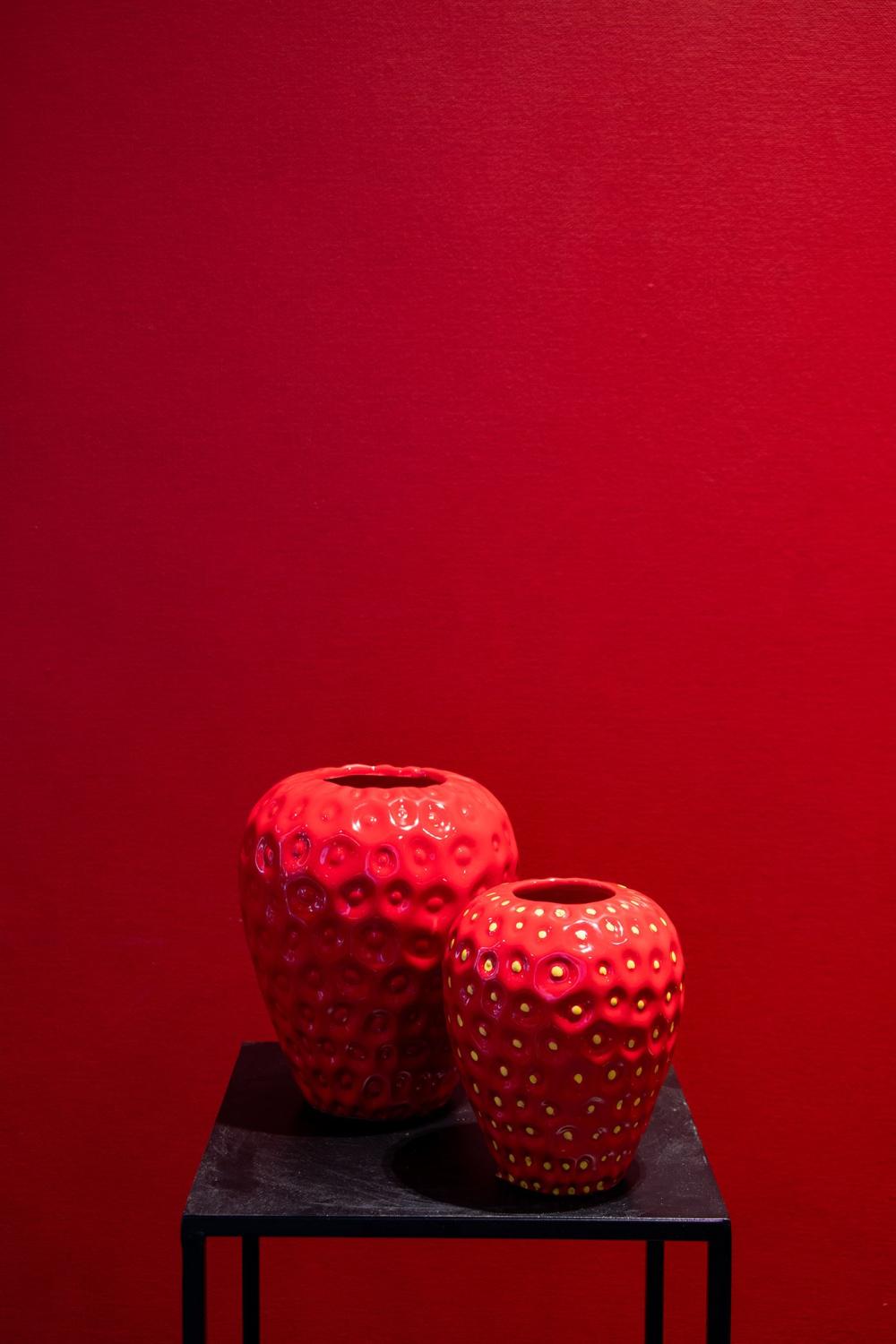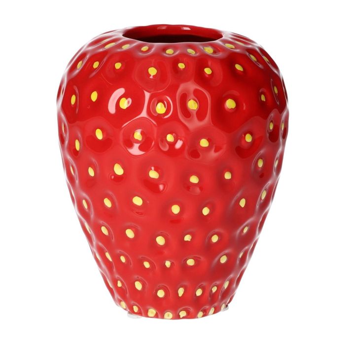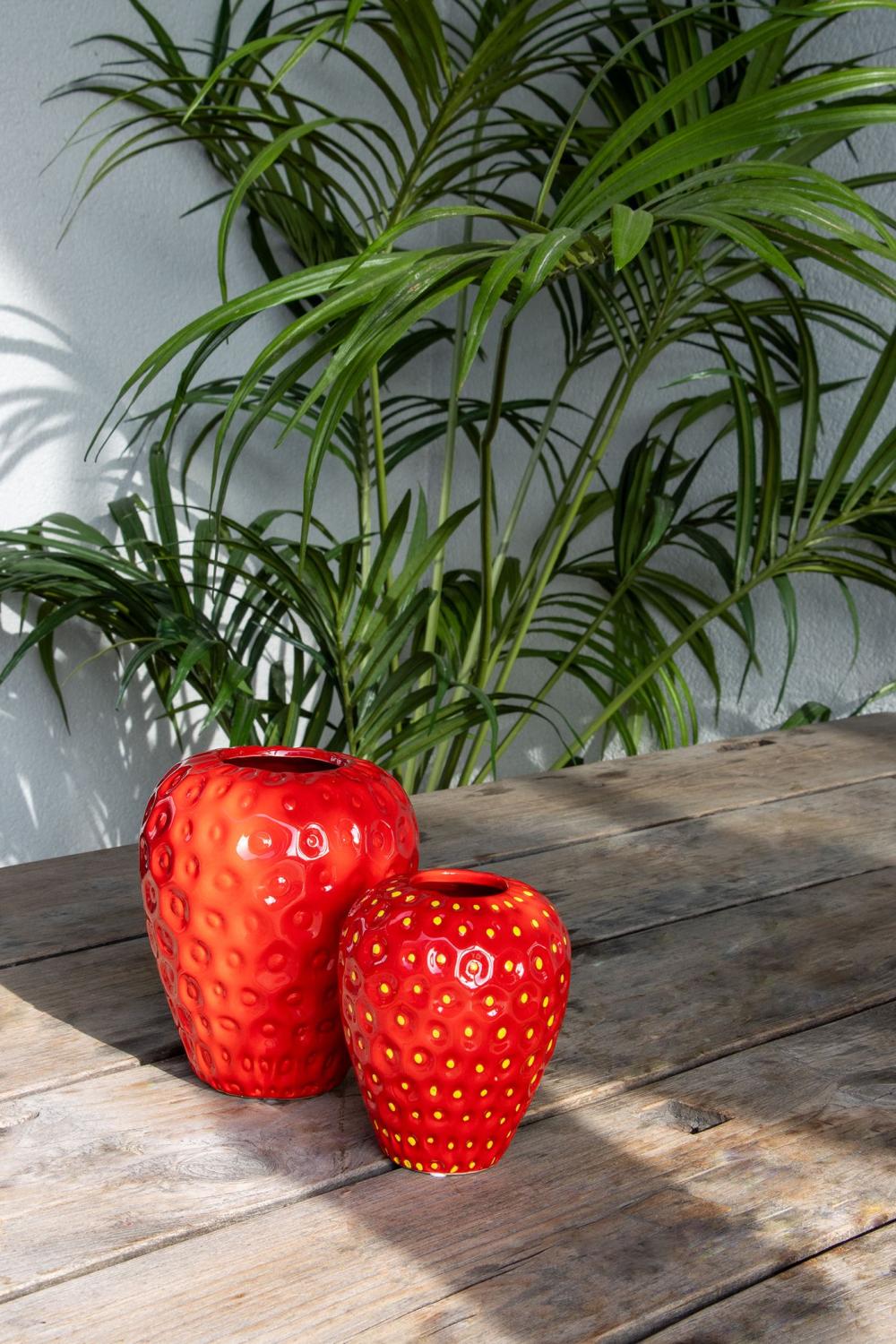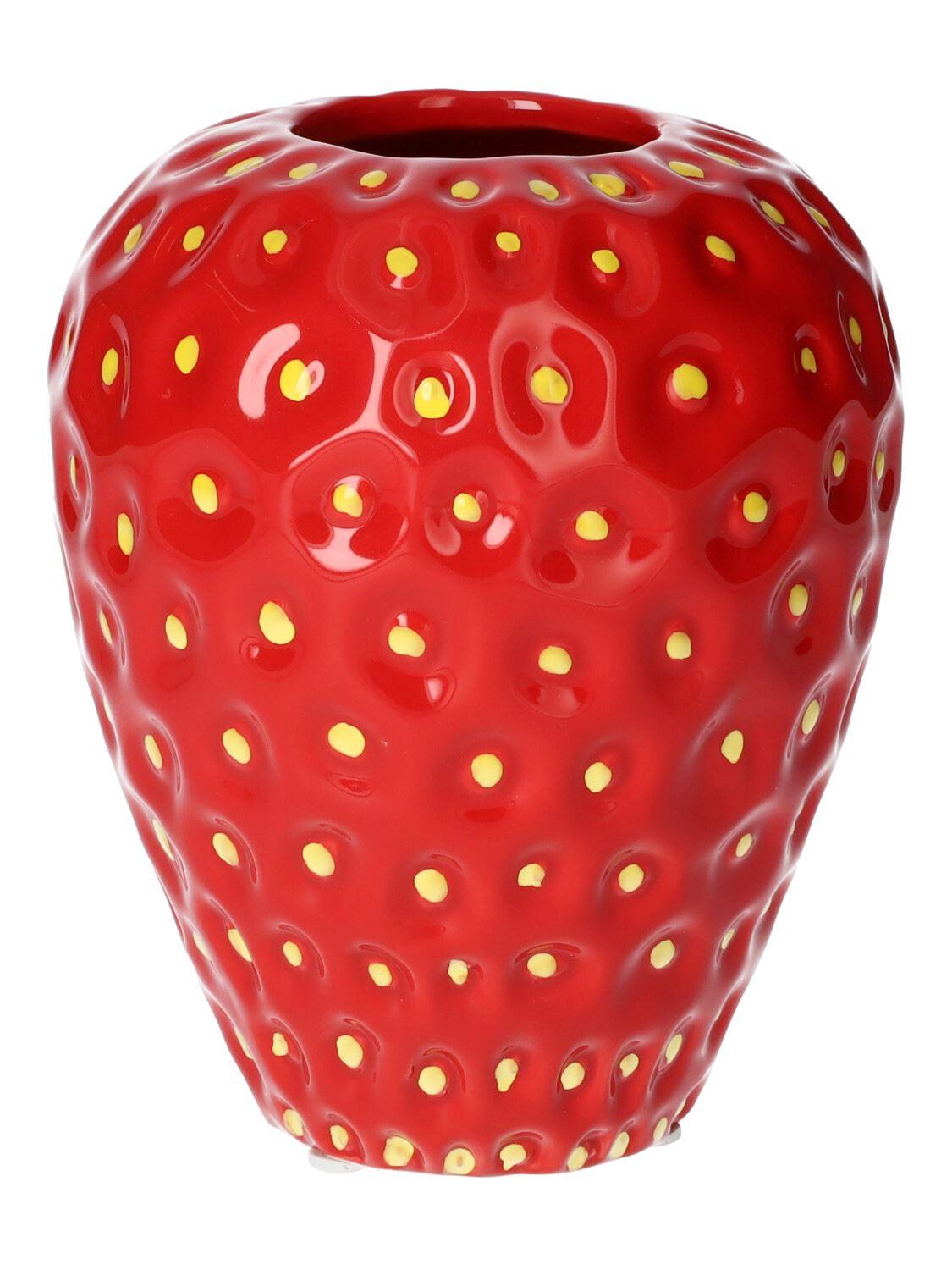 Blumenvase Erdbeere ESBERA, Einkerbungen, rot-gelb, 14cm, Ø11,6cm