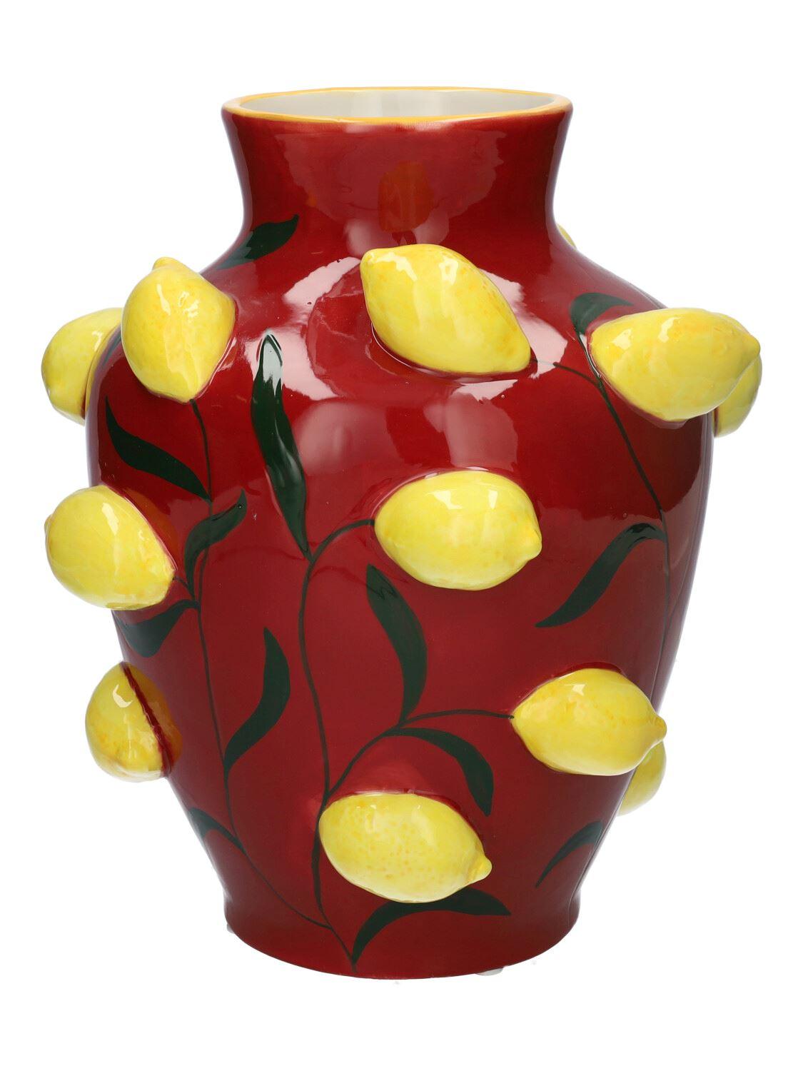 Blumenvase JULLA aus Dolomit, 3D Zitronen, rot-gelb, 25,7cm, Ø22,5cm