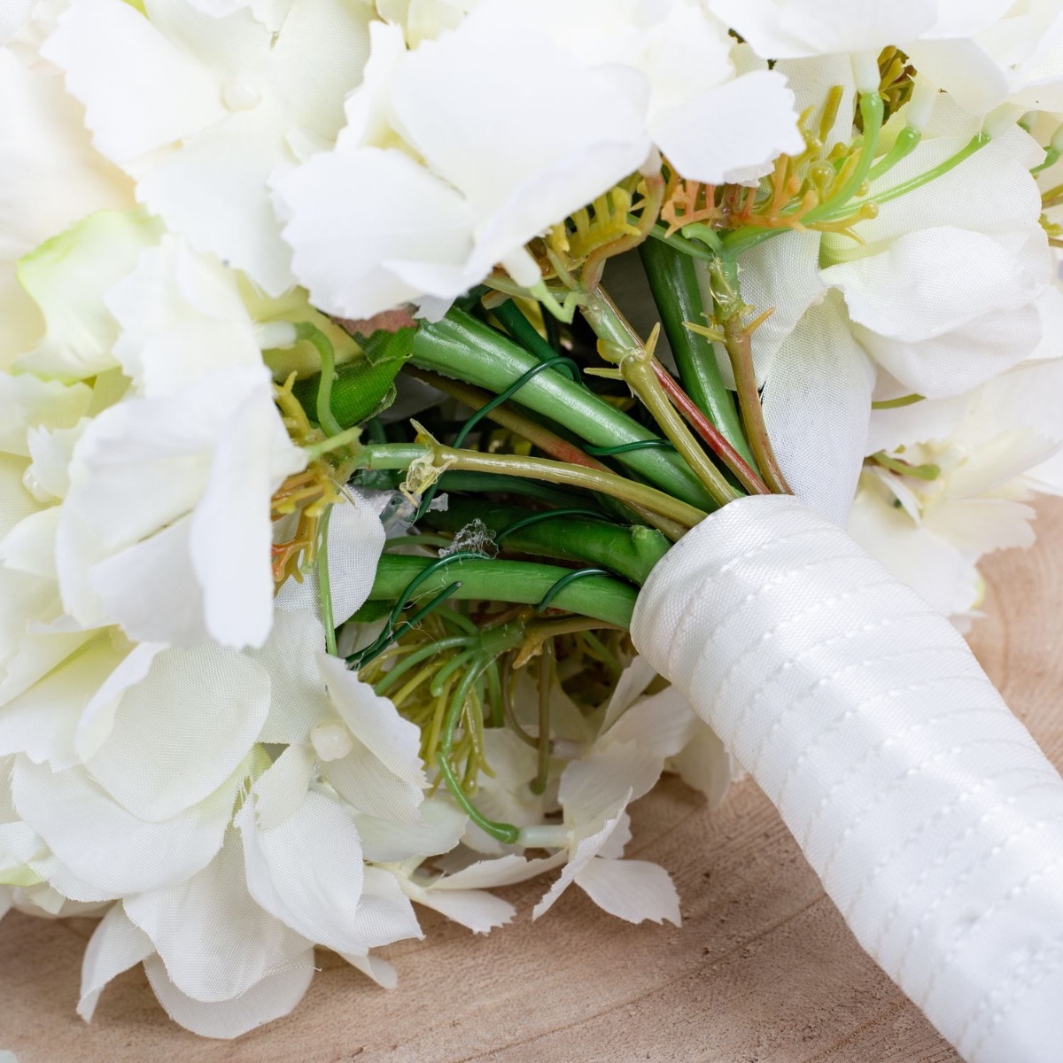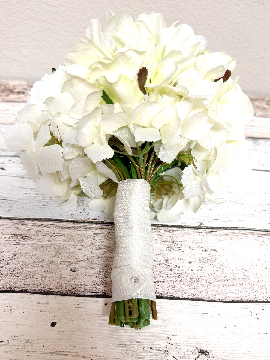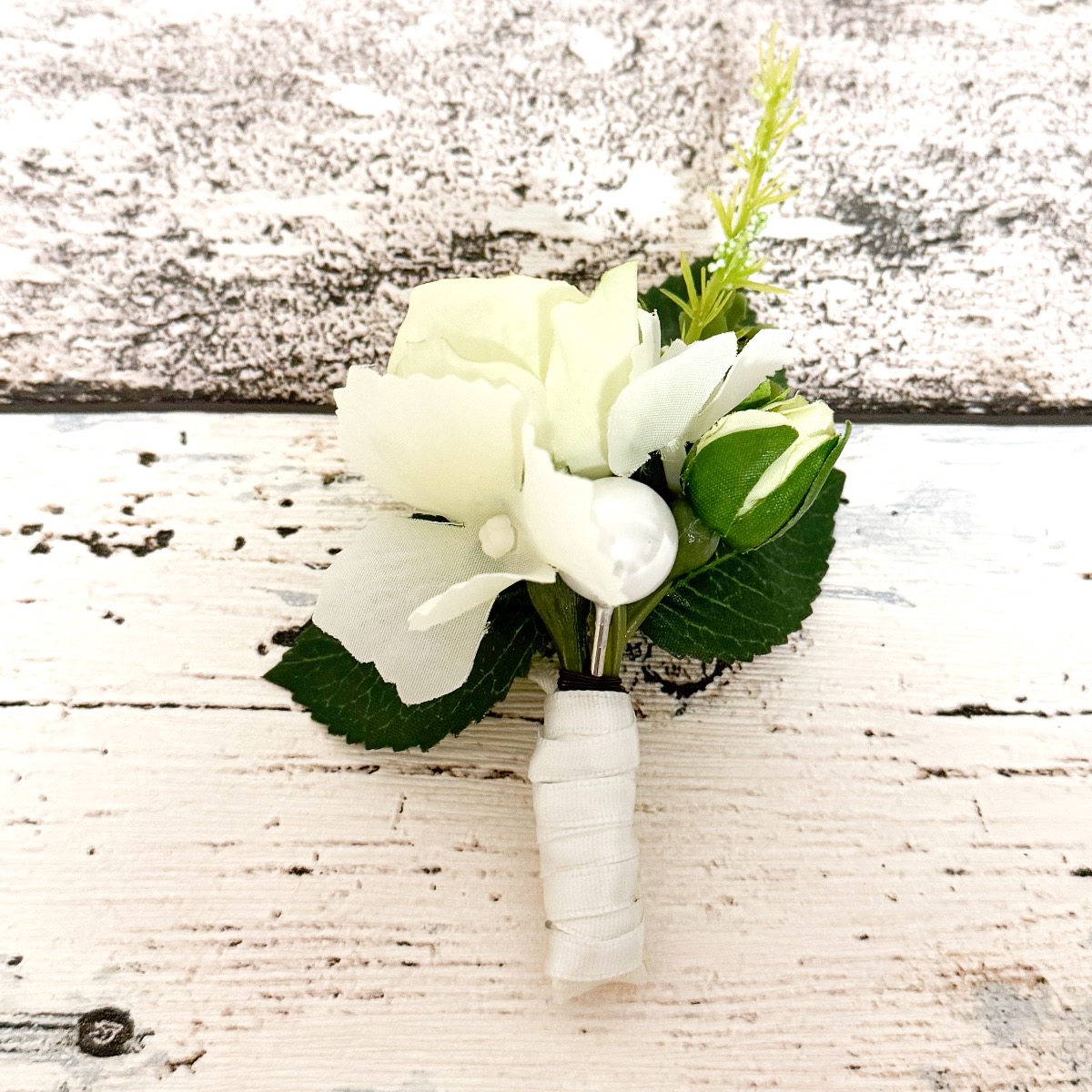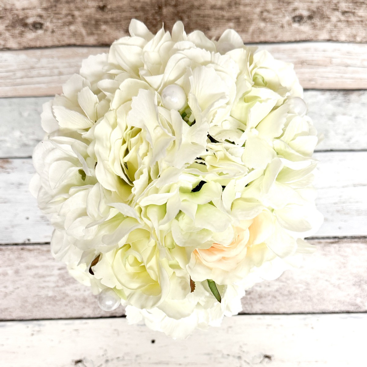 Glamorous Passion! Die zarten Rosen und die cremefarbenen Hortensien verschmelzen harmonisch miteinander und verleihen dem Strauß eine romantische Note. Die Perlen, die in den Strauß eingearbeitet sind, fügen eine subtile, aber luxuriöse Note hinzu. Sie glänzen sanft im Licht und verleihen dem Strauß einen Hauch von Glamour und Raffinesse. Passend zum Brautstrauß trägt der Bräutigam einen Anstecker, der aus einer cremefarbenen Rose, feinen Hortensienblüten, sowie einer Perle besteht. Diese koordinierten Details verbinden das Brautpaar auf subtile Weise und vervollständigen das elegante Erscheinungsbild der Hochzeitsgesellschaft. Insgesamt strahlt dieser Brautstrauß eine Aura der Romantik und der Eleganz aus, die das Herz berührt und die Augen verzaubert. Ein wahrhaft bezaubernder Begleiter für die Braut auf ihrem Weg zum Altar. Wollen auch Sie einen künstlichen Hochzeitsstrauß? Shop the Look!