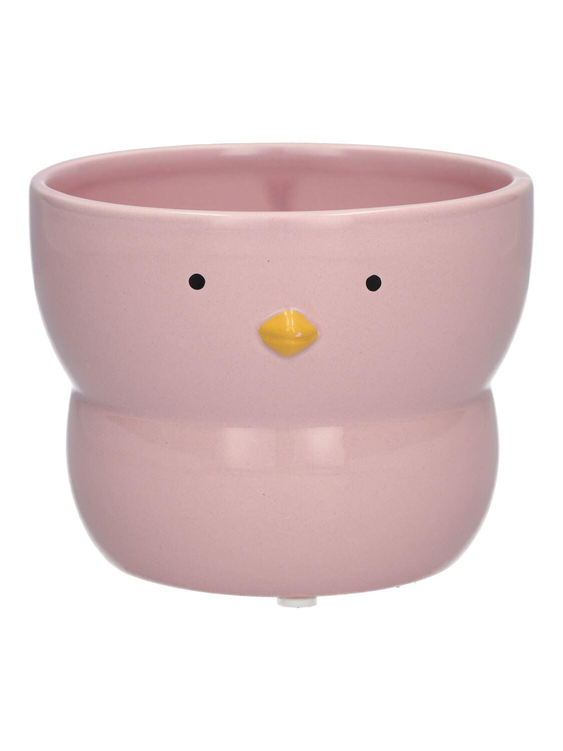 Deko Pflanztopf ADDILYNN aus Dolomit, mit Küken Gesicht, rosa, 8cm, Ø10,5cm
