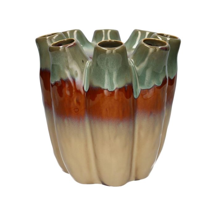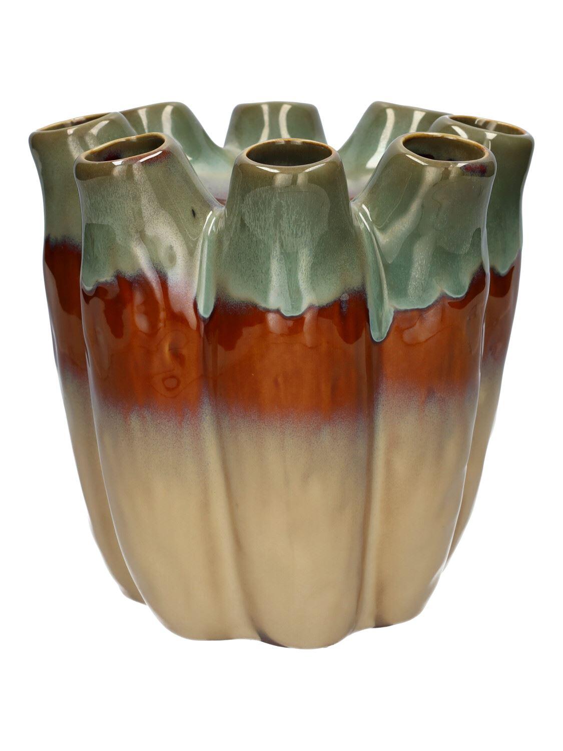 Blumenvase WIKTORIA aus Keramik, mit 8 Öffnungen, grün-braun-taupe, 19cm, Ø19cm