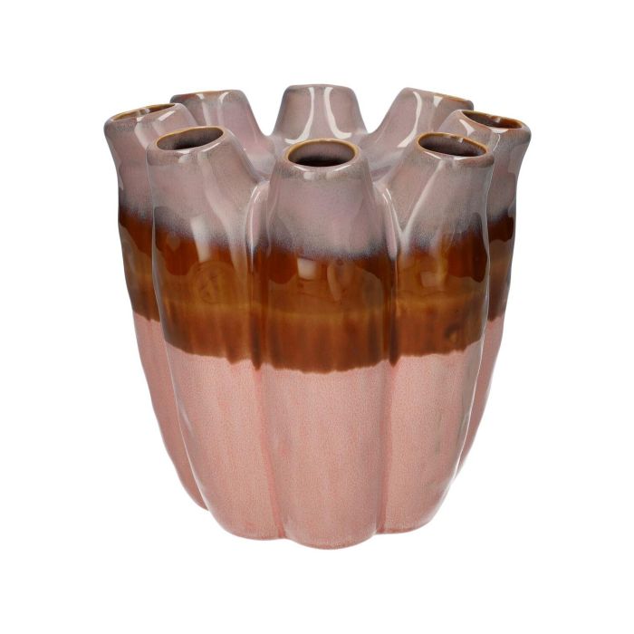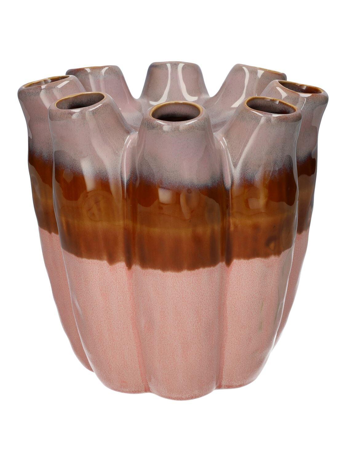 Blumenvase WIKTORIA aus Keramik, mit 8 Öffnungen, lila-braun-rosa, 19cm, Ø19cm