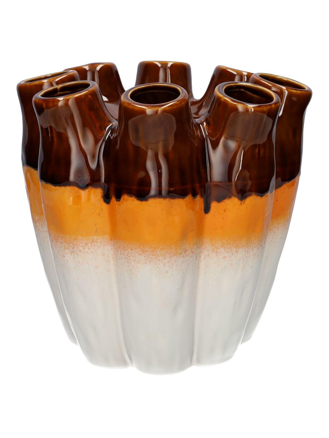 Blumenvase WIKTORIA aus Keramik, mit 8 Öffnungen, braun-orange-weiß, 24cm, Ø24cm