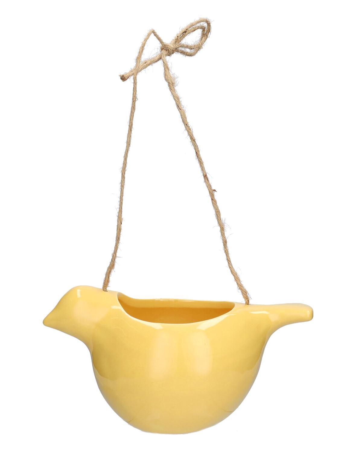 Vogel Blumenampel SAREEN aus Dolomit, gelb, 21,1x11,7x10,5cm