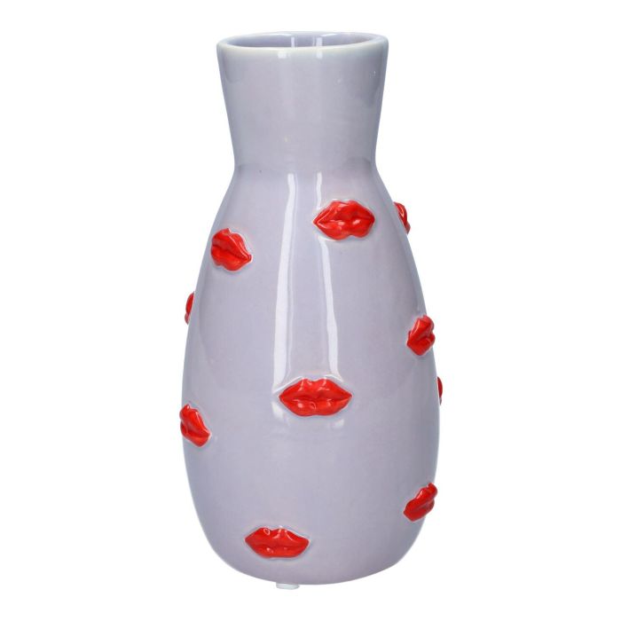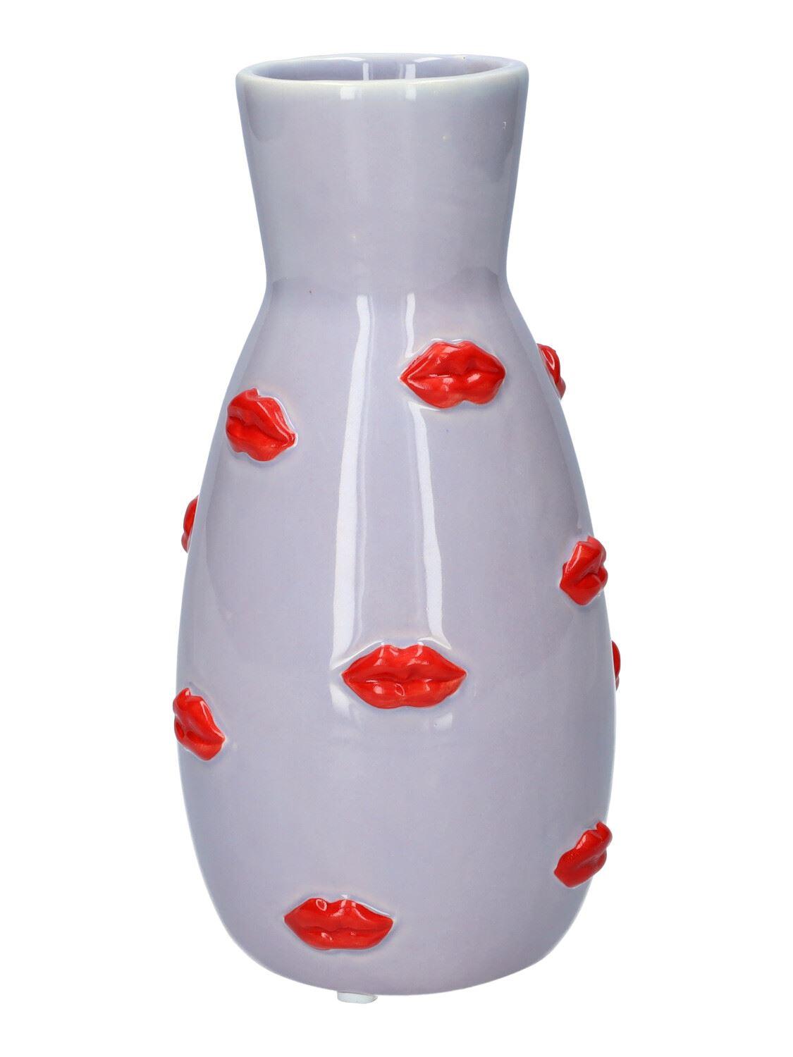 Dekovase ADELIA mit Lippen Motiv, Keramik, flieder-rot, 18cm, Ø9,6cm