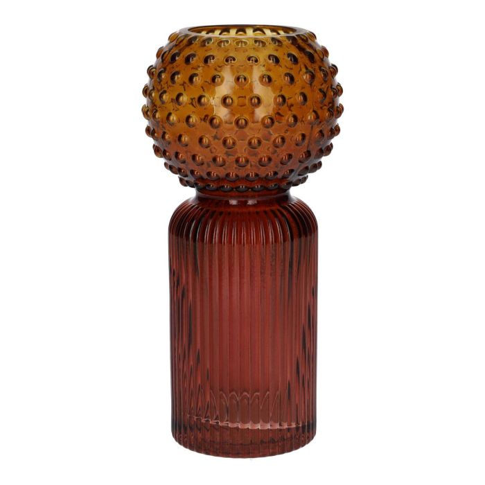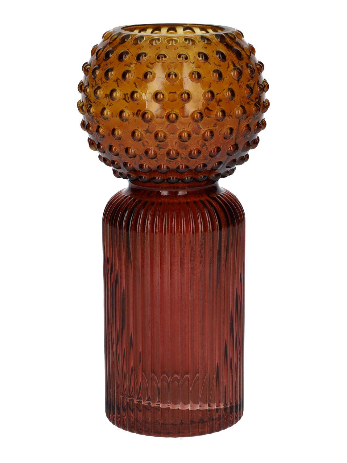 Tischvase Glas COLLETTE mit Rillen Punkten, rot-amber-klar, 20cm, Ø9,5cm