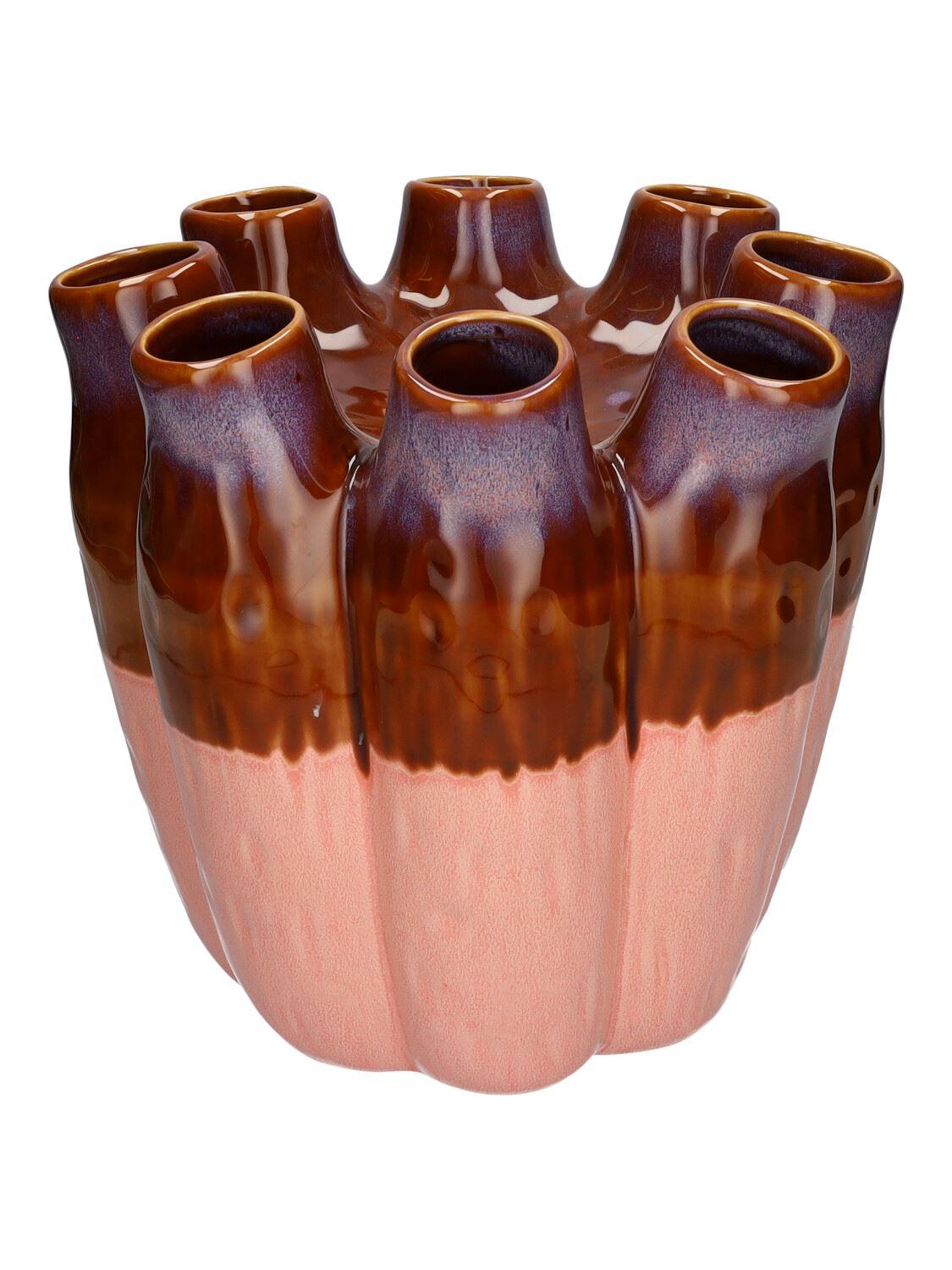 Blumenvase WIKTORIA aus Keramik, mit 8 Öffnungen, lila-braun-rosa, 28cm, Ø29cm