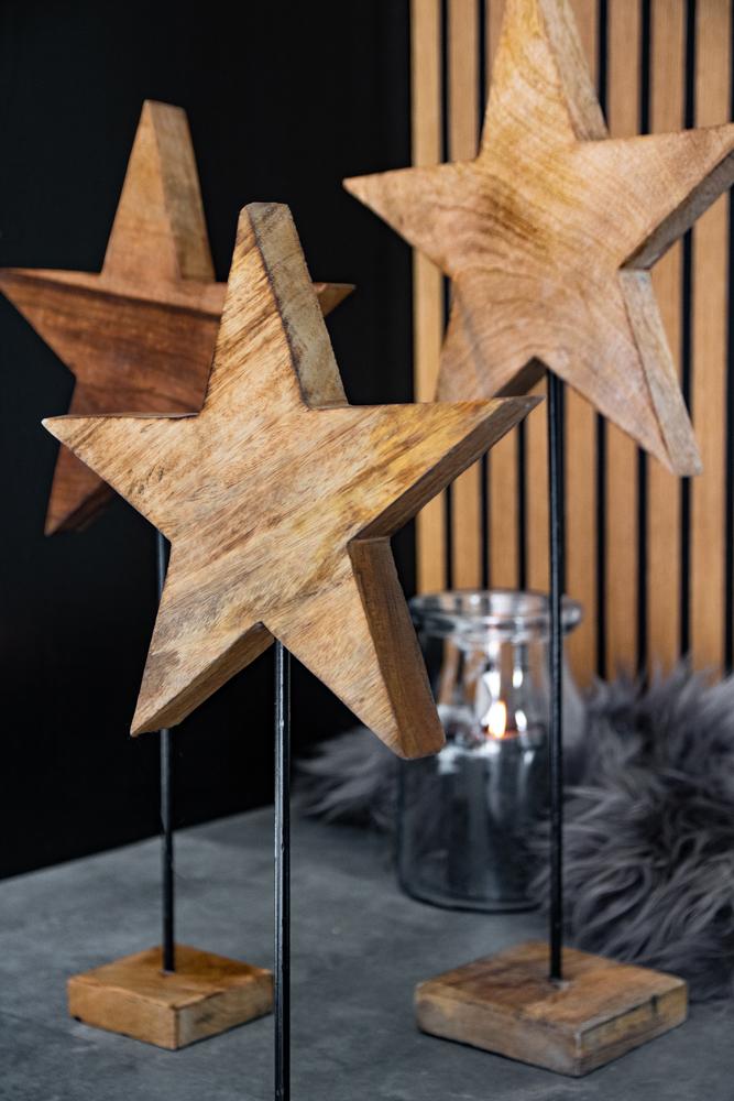 Deko Figur Stern aus Holz LINDAL, Holzfuß, natur, 30x10x60cm