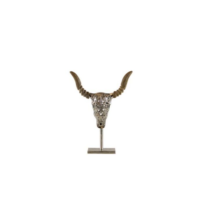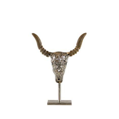Deko Stier aus Metall DOWA, Holzfuß, silber, 27x34x6cm