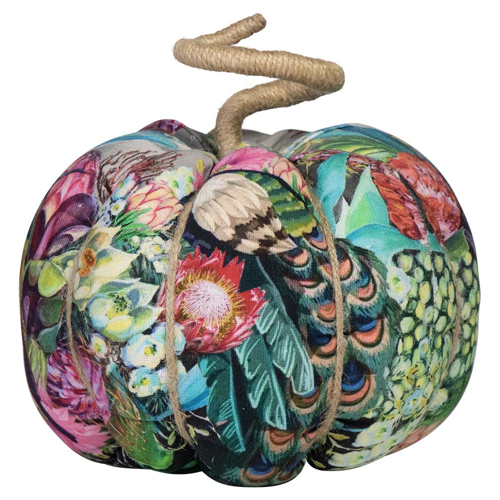 Deko Kürbis AKUNA aus Baumwolle, handmade, Pfau Motiv, bunt, Ø23cm