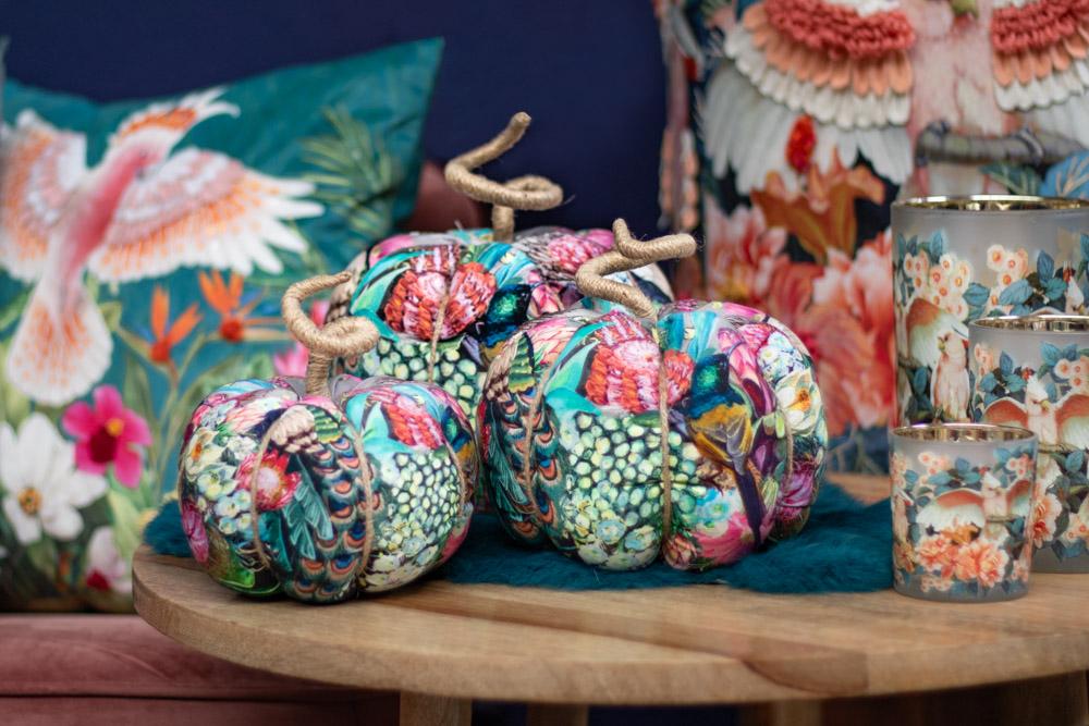 Deko Kürbis AKUNA aus Baumwolle, handmade, Pfau Motiv, bunt, Ø13cm