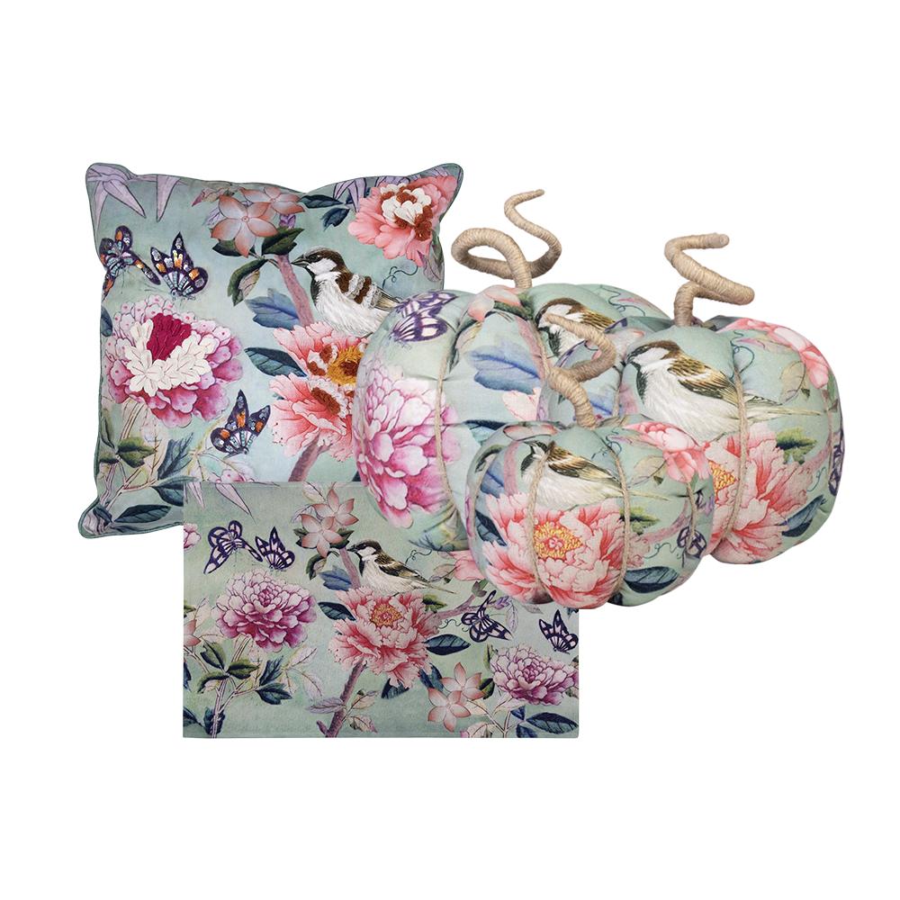 Deko Kürbis AKUNA aus Baumwolle, handmade, Schmetterling Vogel Motiv, bunt, Ø23cm