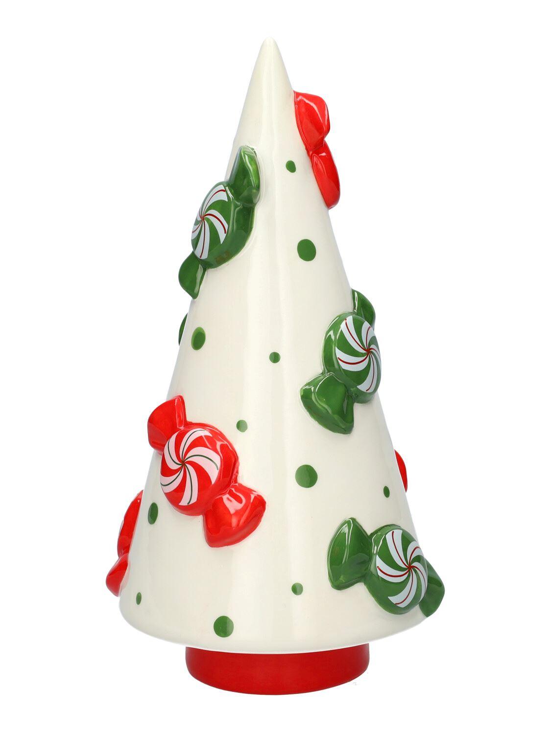 Dekofigur Tannenbaum CRUMB aus Keramik, mit Bonbons, rot-weiß-grün, 23,6cm, Ø11,8cm