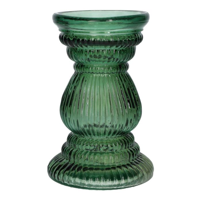 Glas Blumenvase ELEONORE mit Rillen, recycelt, grün-klar, 20cm, Ø12,5cm