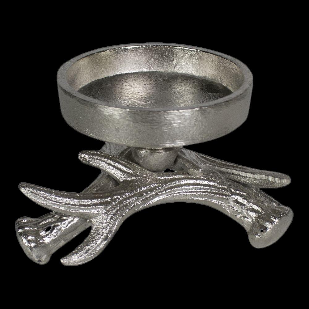 Geweih Kerzenhalter LIBUSCHA aus Aluminium, silber, 8cm, Ø14cm