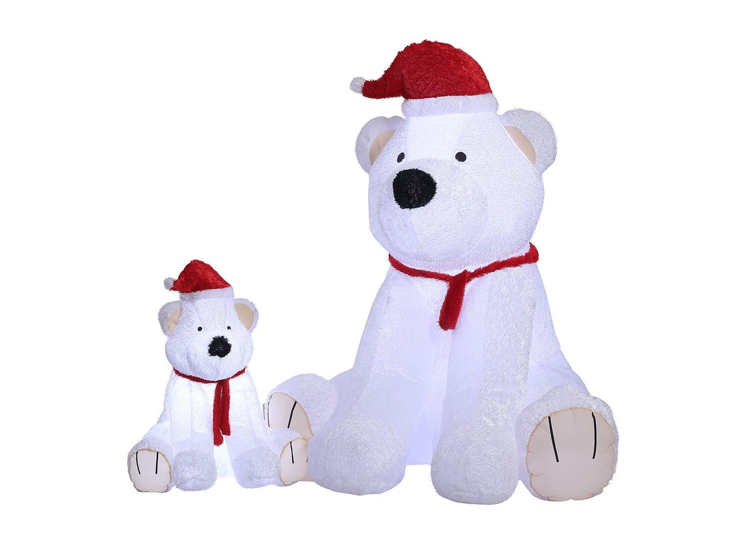 XXL Deko Eisbären CASIMARO, aufblasbar, plüschig, LEDs, weiß, 165x170x183cm