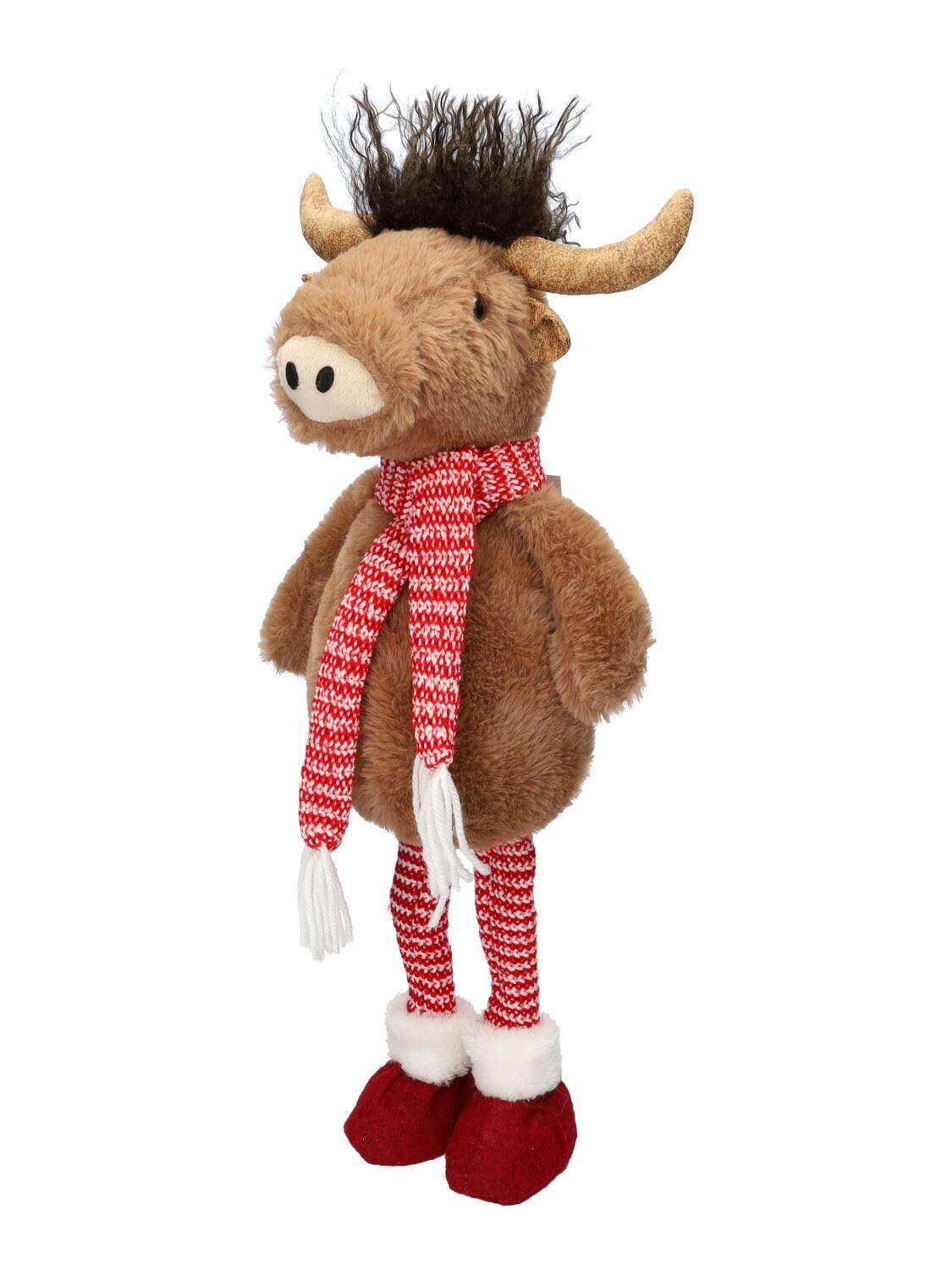 Plüschige Dekotier Stier STADEN, stehend, braun-rot, 25x18x67cm