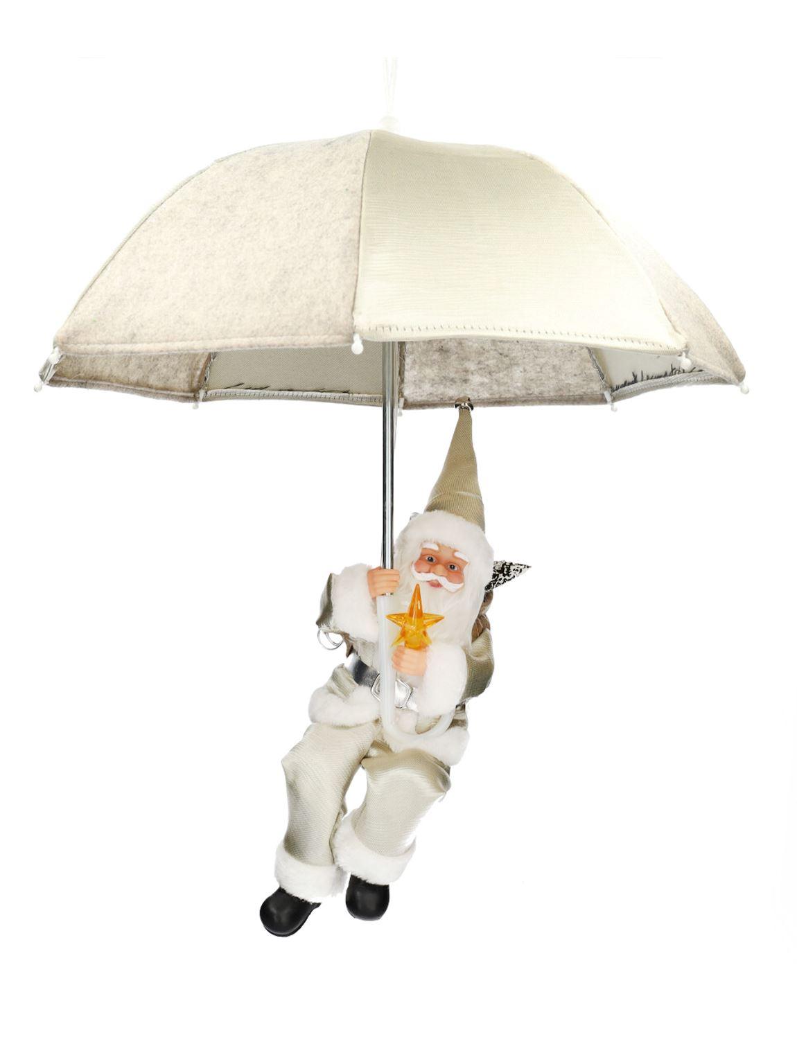 Hängender Santa Claus SISSON mit Schirm, LEDs, ivory-weiß, 77cm, Ø70cm