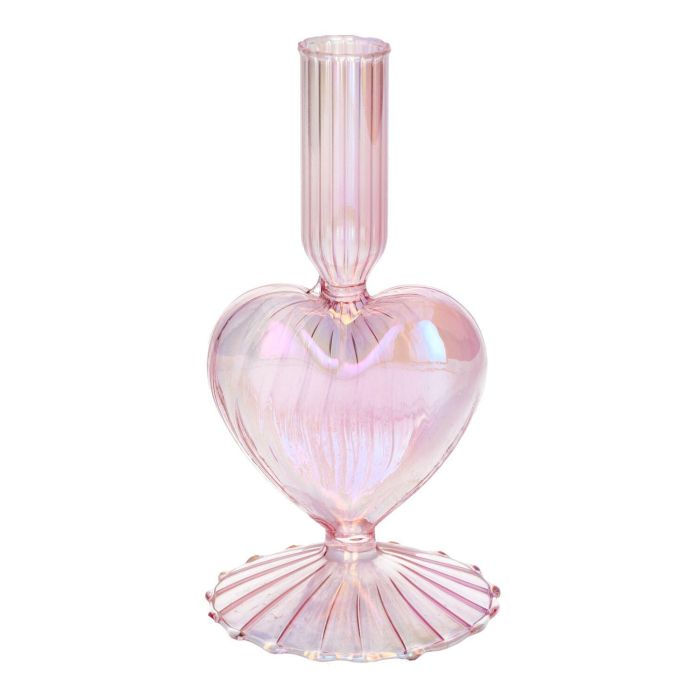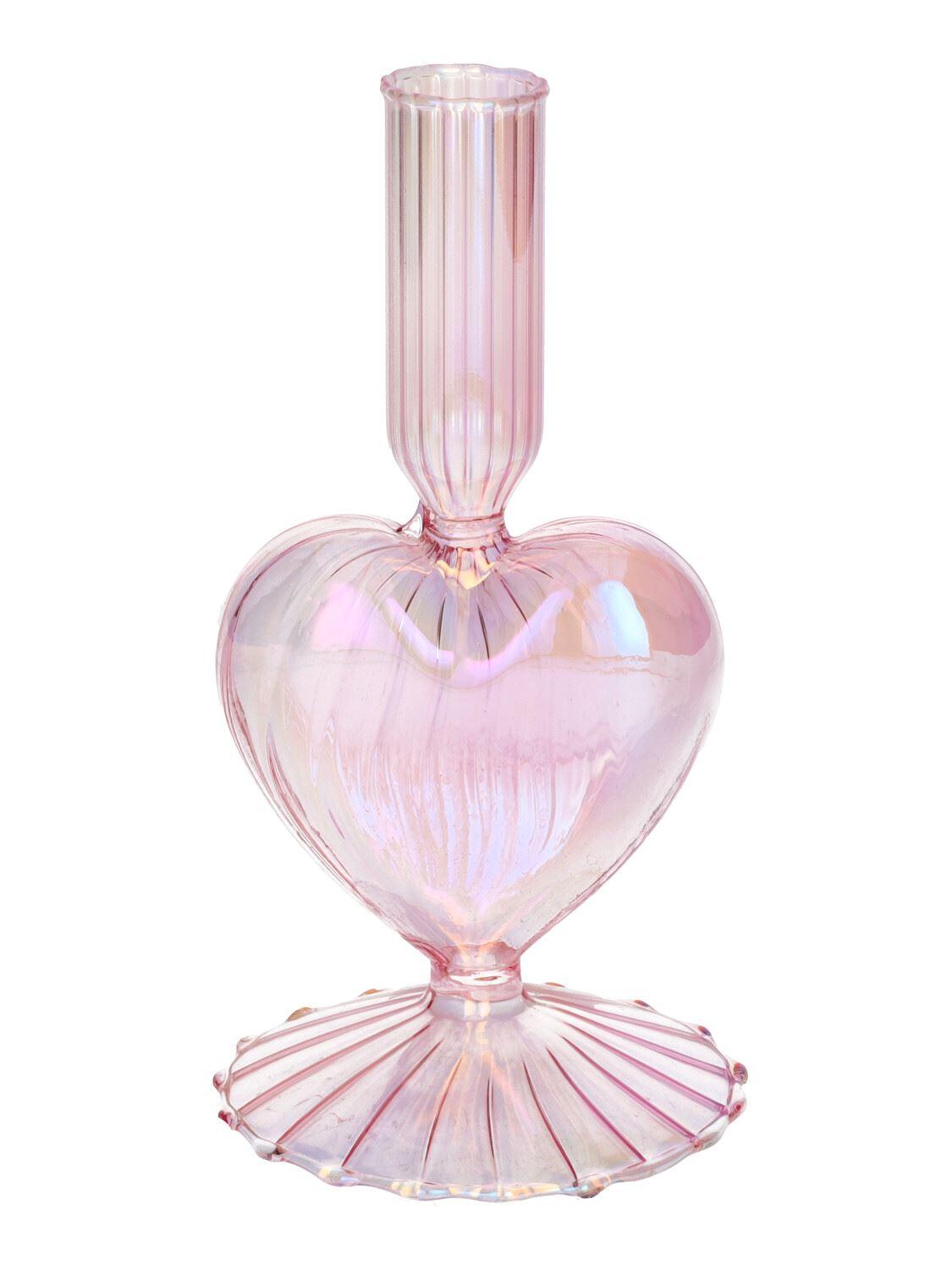 Glas Kerzenständer ELIZZA in Herzform, mit Fuß, irisierend-hellrosa, 8,5x8,5x16,5cm