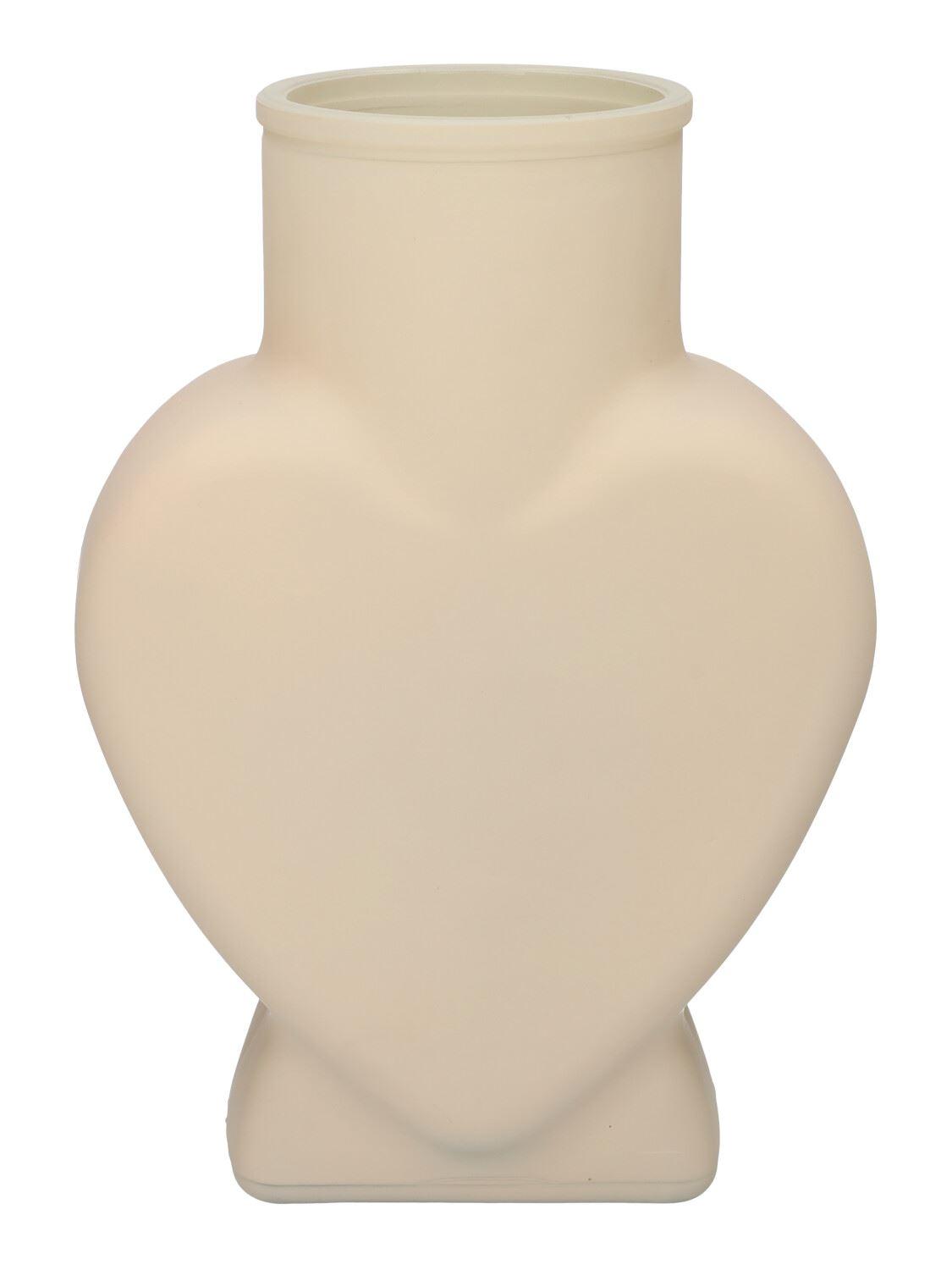 Glas Dekovase FILIPA in Herzform, mit Fuß, sand-matt, 15,5x8x22cm