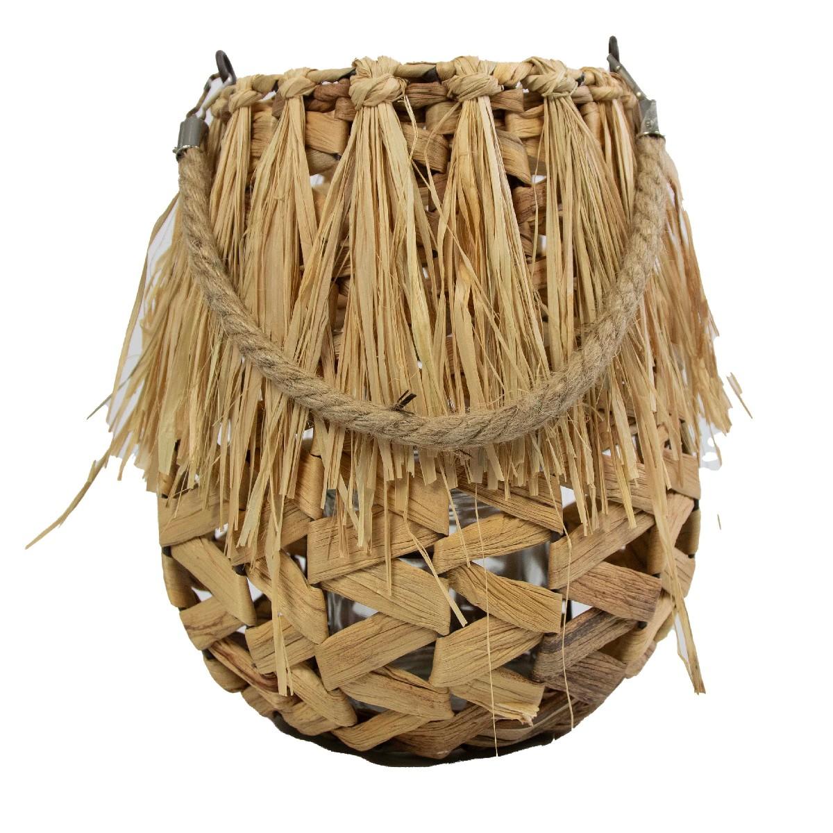 Naturfaser Laterne NATASCIA, Wasserhyazinthe, Henkel, Glaseinsatz, braun, 27cm, Ø17cm