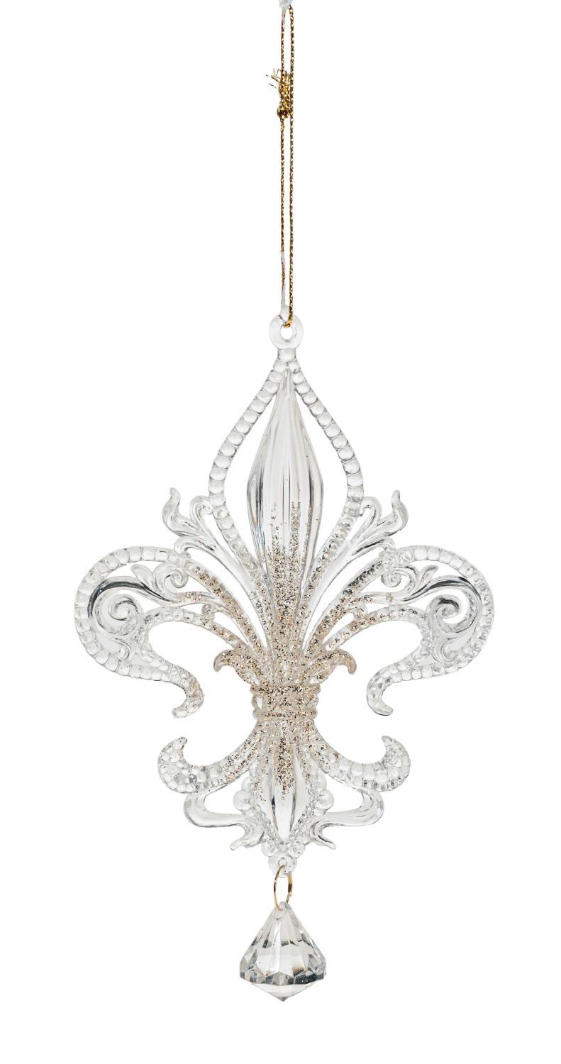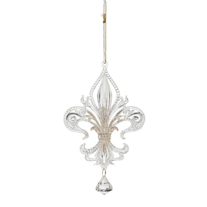 Deko Anhänger Heraldische Lilie AZARIEL aus Acryl, Glitzer, transparent-gold, 15cm